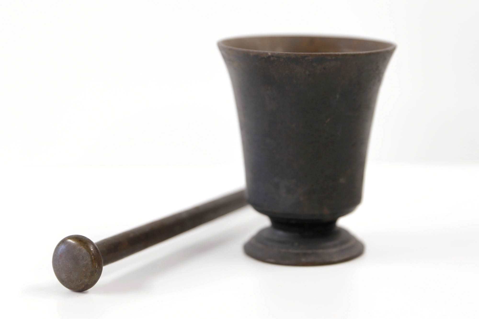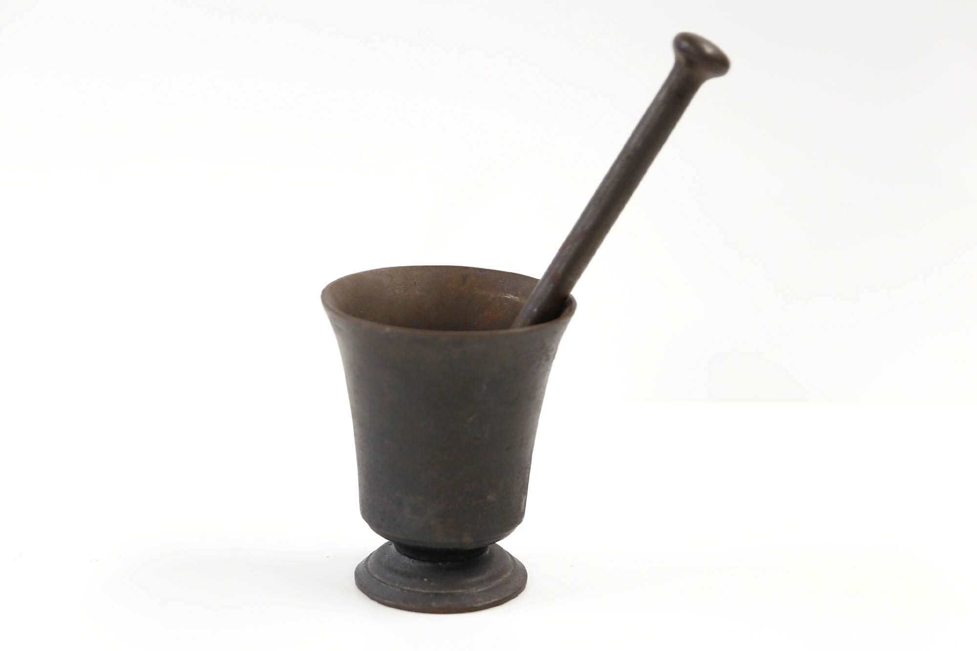 Antiikkinen valurautamortteli + survin