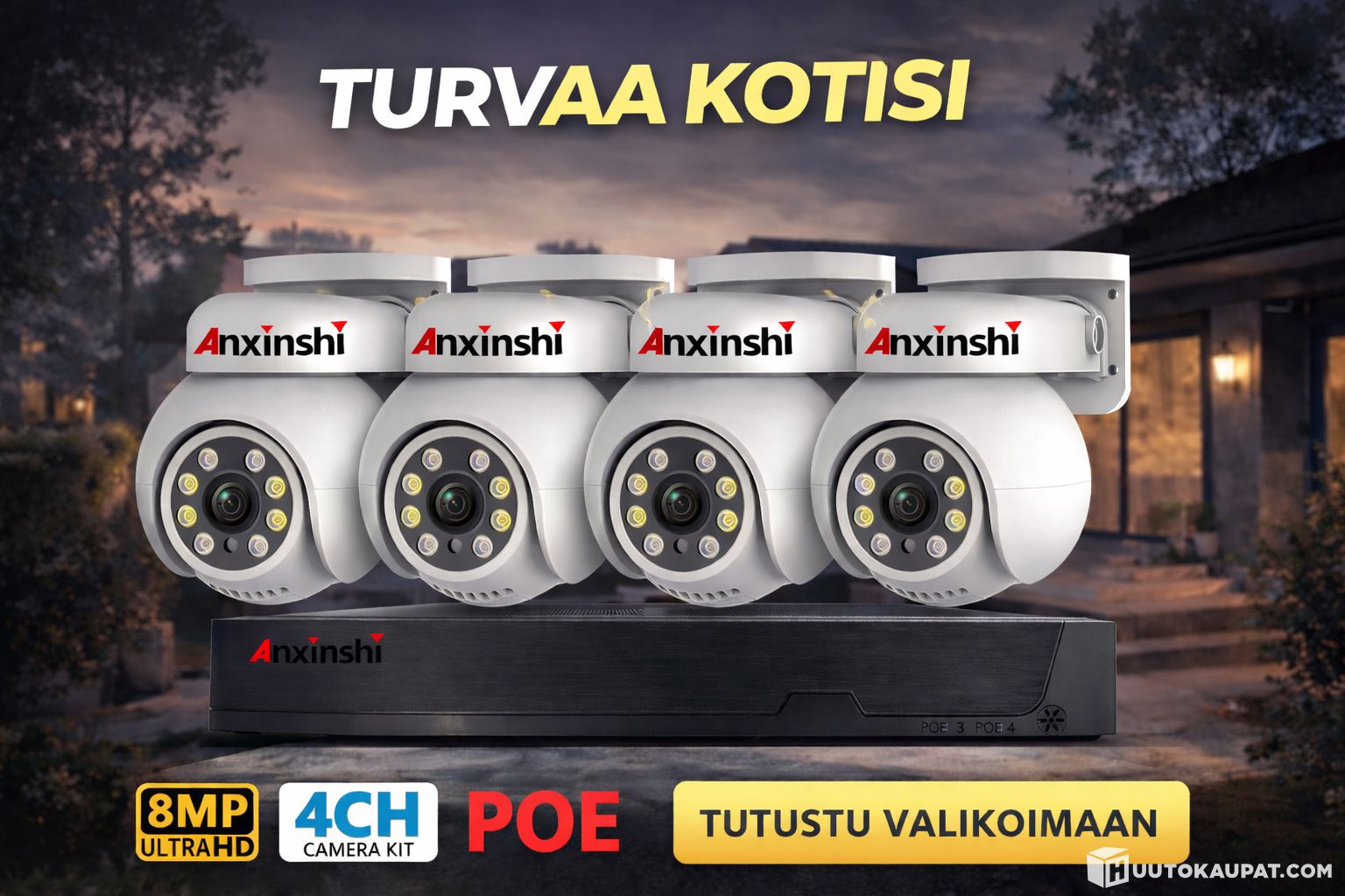 ✔️ 4 × 8 MP POE-kameraa (PTZ-toiminto)