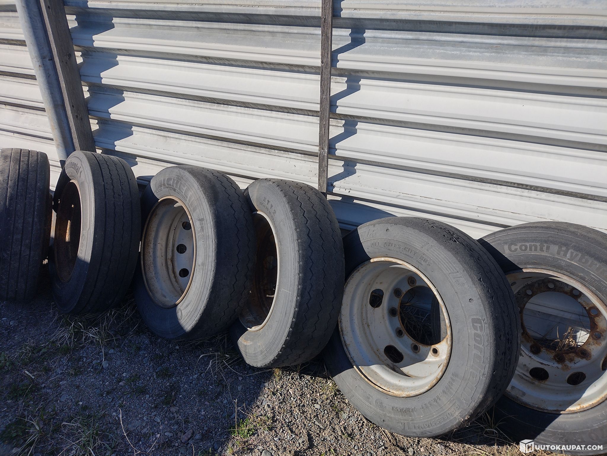 6kpl huonokuntoiset renkaat 275/70-22,5 + vanteet