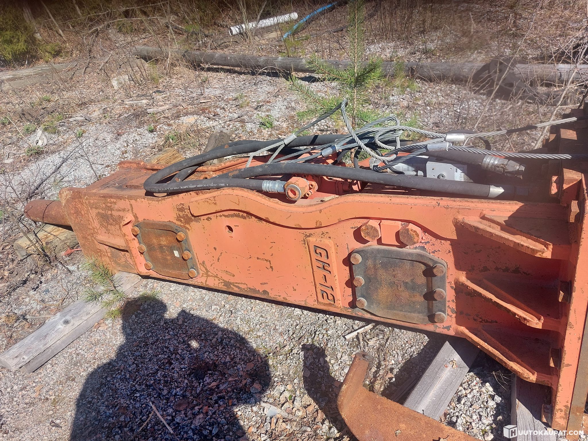 NPK CH-12 kivi-, kalliovasara, paino n. 2400 kg, automaatti rasvarilla, piikin vahvuus 130 mm, ostettu uutena meille, vm. 2006, ollut käytössä koko historian aikana n.150 h, lähinnä omilla työmailla rikotuksessa.