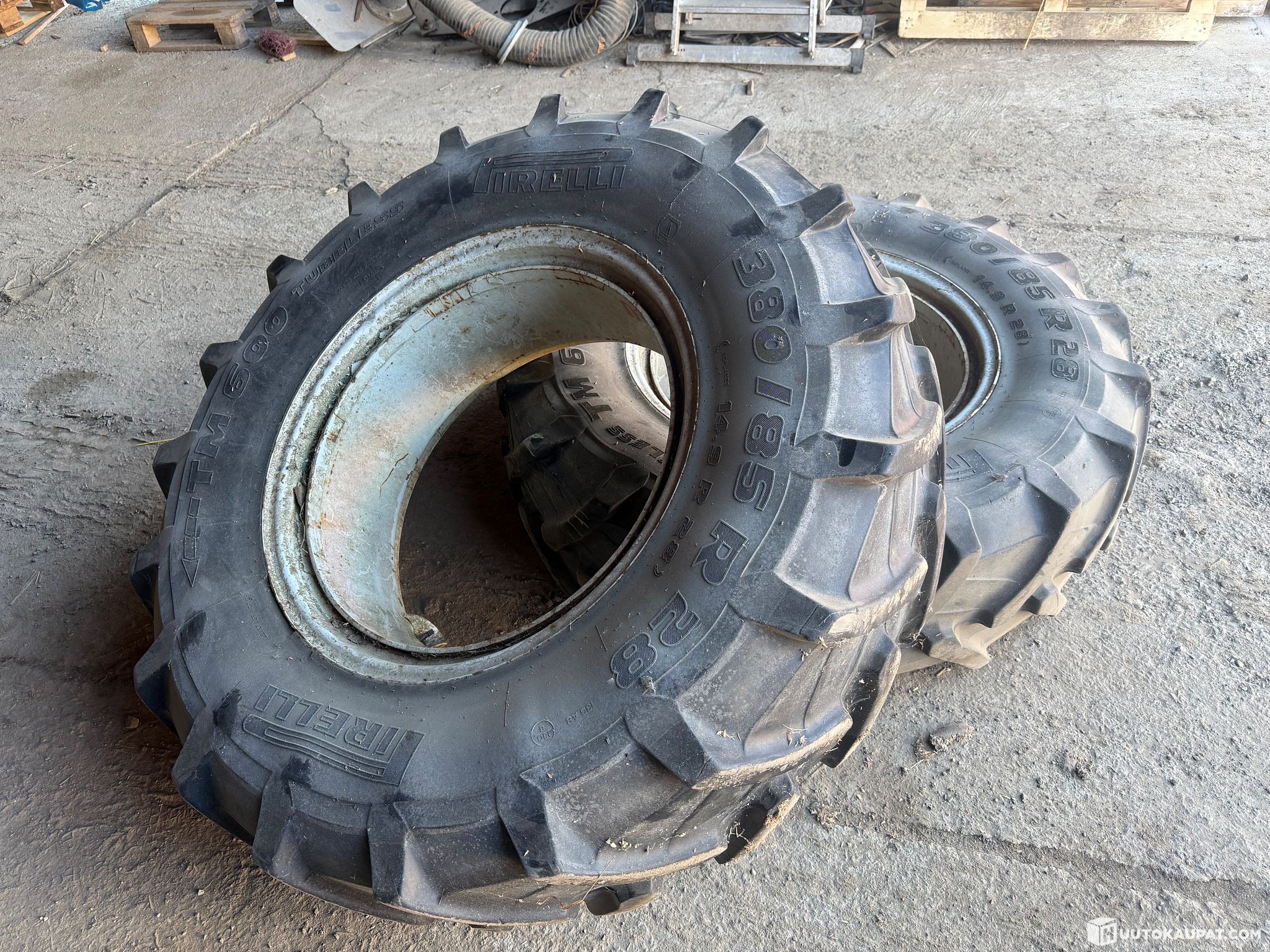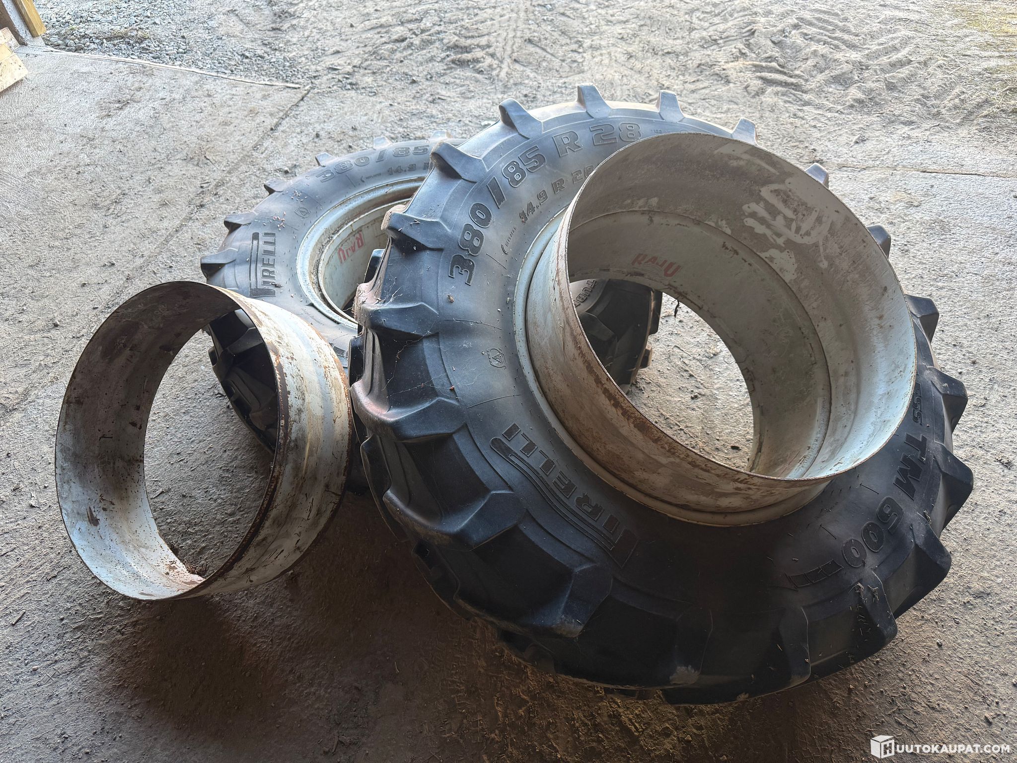 Myydään käyttämättömäksi jääneet traktorin etuparipyörät raju välivanteilla ja pikalukoilla. Ketjut eivät sisälly kauppaan, vain kuvissa näkyvät tuotteet. Renkaat ovat käytetyt mutta hyväkuntoiset. Välivanteissa vähän pintaruostetta. Kumit otettiin traktorin ehjistä eturenkaista ja istutettiin käytetyille vanteille, eivät ole olleet käytössä koska olivat liian korkeat meidän käyttöön.
