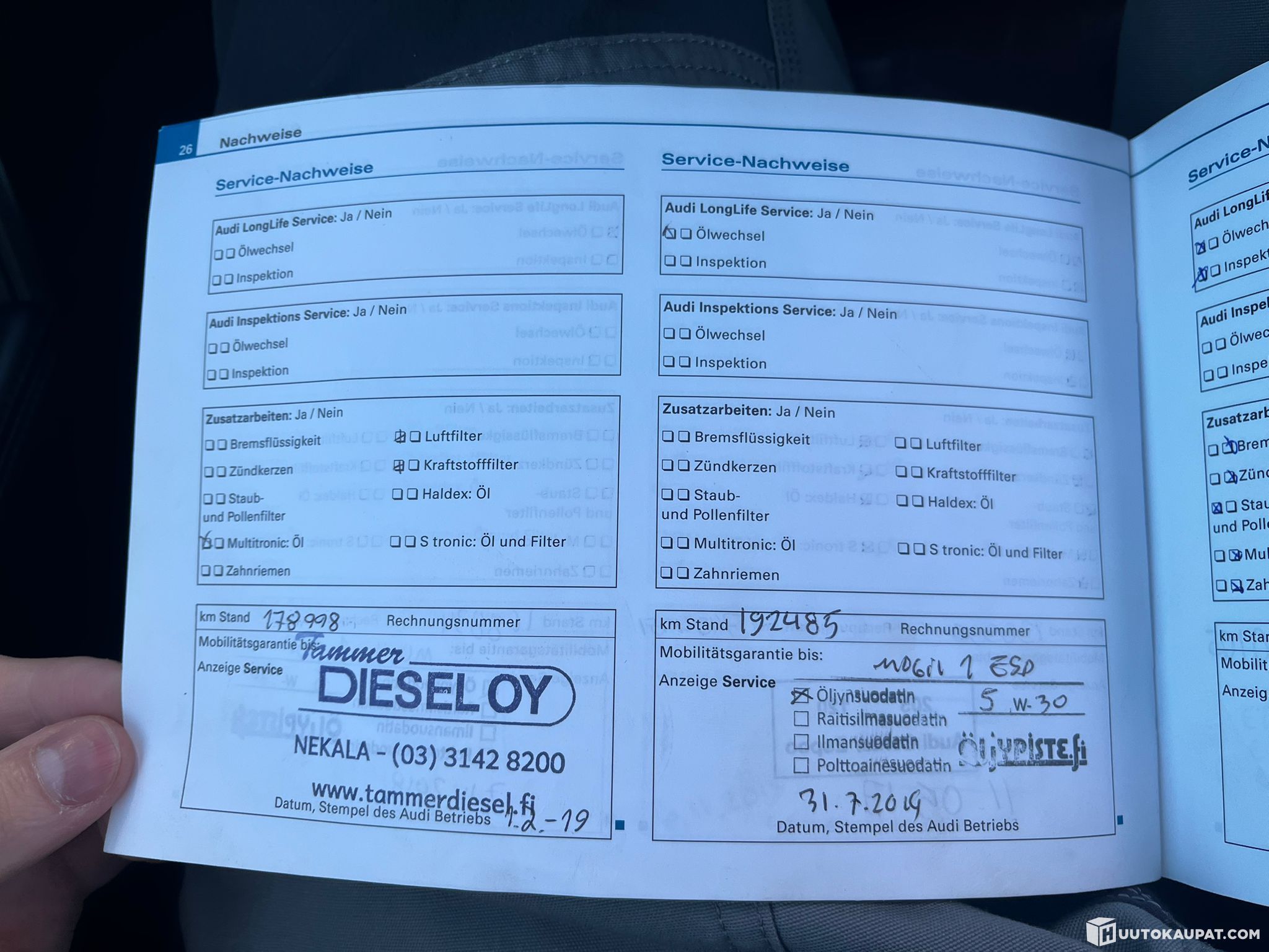 Huoltokirja ja 2 avainta