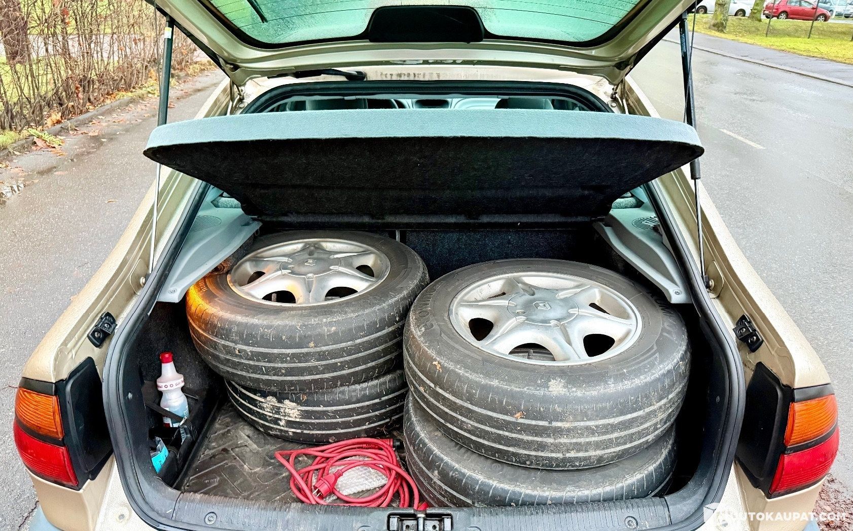 Koriltaan erinomaisessa kunnossa ja ruosteeton. Kesärenkaat Renaultin alkuperäisillä alumiinivanteilla ja nastarenkaat peltivanteilla.