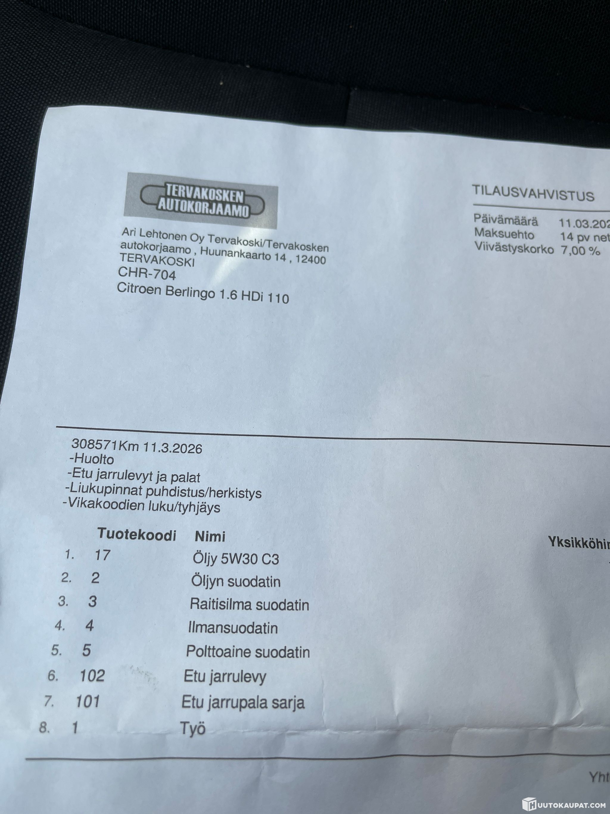 Auto huollettu maaliskuussa, öljyt, suodattimet ja etujarrulevyt + palat. Huollon jälkeen katsastettu hyväksytysti.