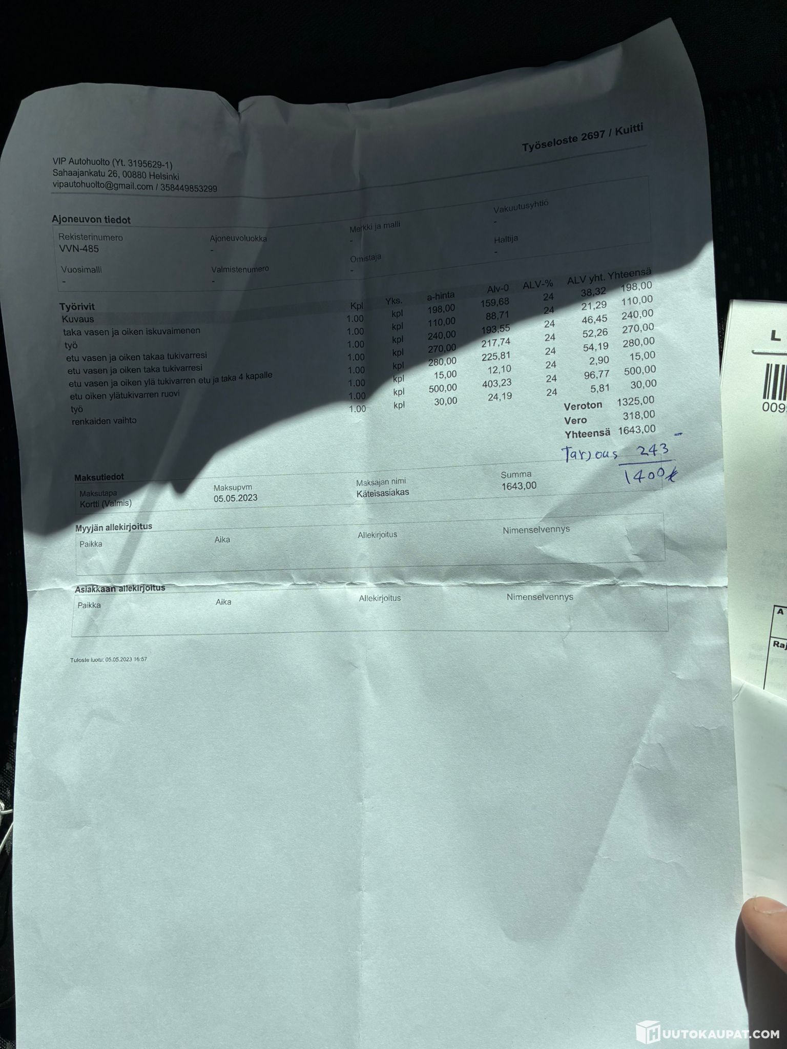 Verkkopankkimaksu, maksuaika 24 tuntia tarjouksen hyväksymisestä.