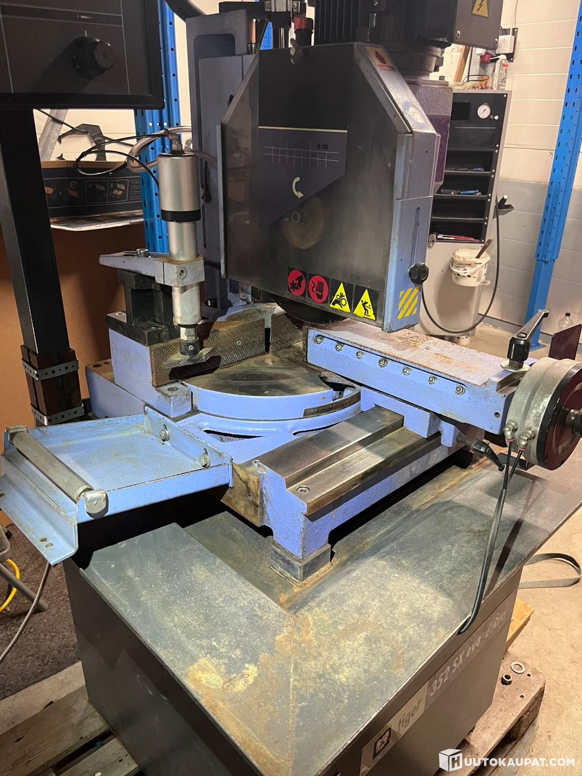 Vähän käytetty metallipyörösaha , paljon teriä mukaan.