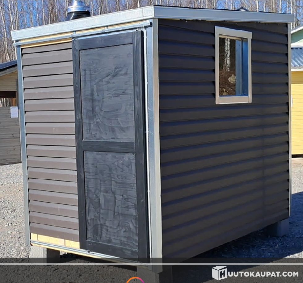 Rakennus on testikappale (ei siihen kuinka ruman saunan voi tehdä) vaan kärry tai lauttasaunaa varten, runko on sinkitty kevyt metallirankarunko ja välissä uretaanilevy. Lattia on puurunkoinen ja päällä vesivaneri, lattian keskellä on lattiakaivo ja siihen kaadot, tästä saa johdettua vedet hallitusti haluttuun paikkaan.
