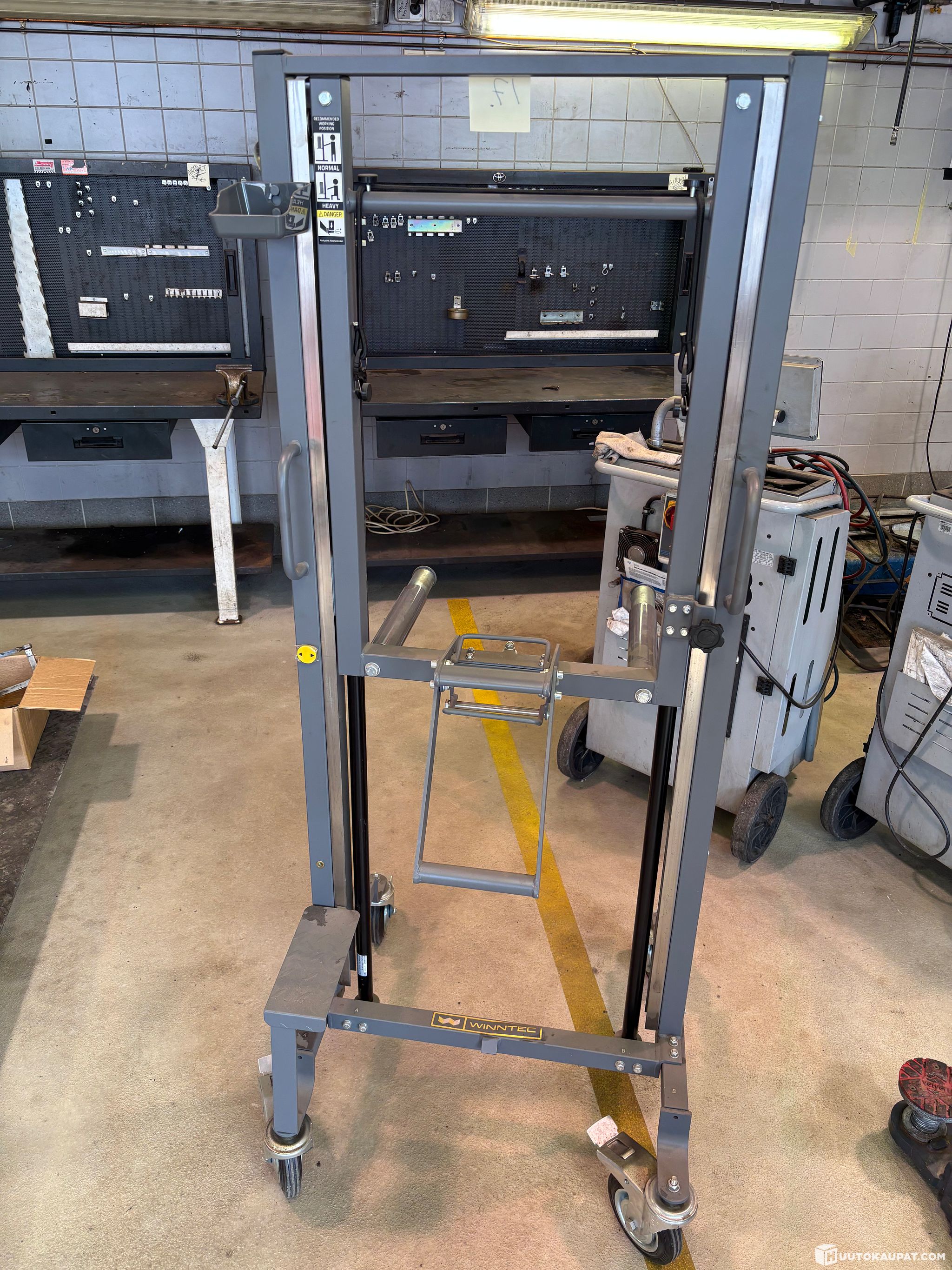 Kuvien mukainen pyörän kevennin helpottamaan auton pyörien vaihtoa.