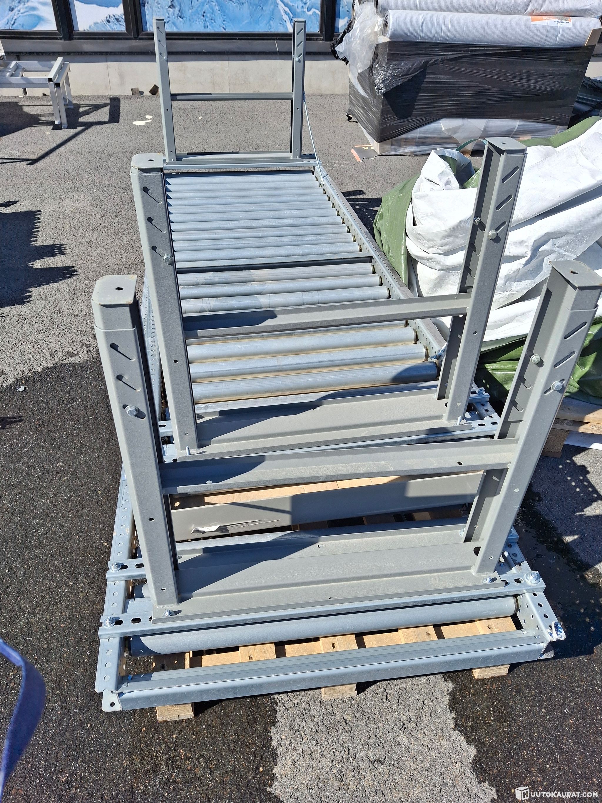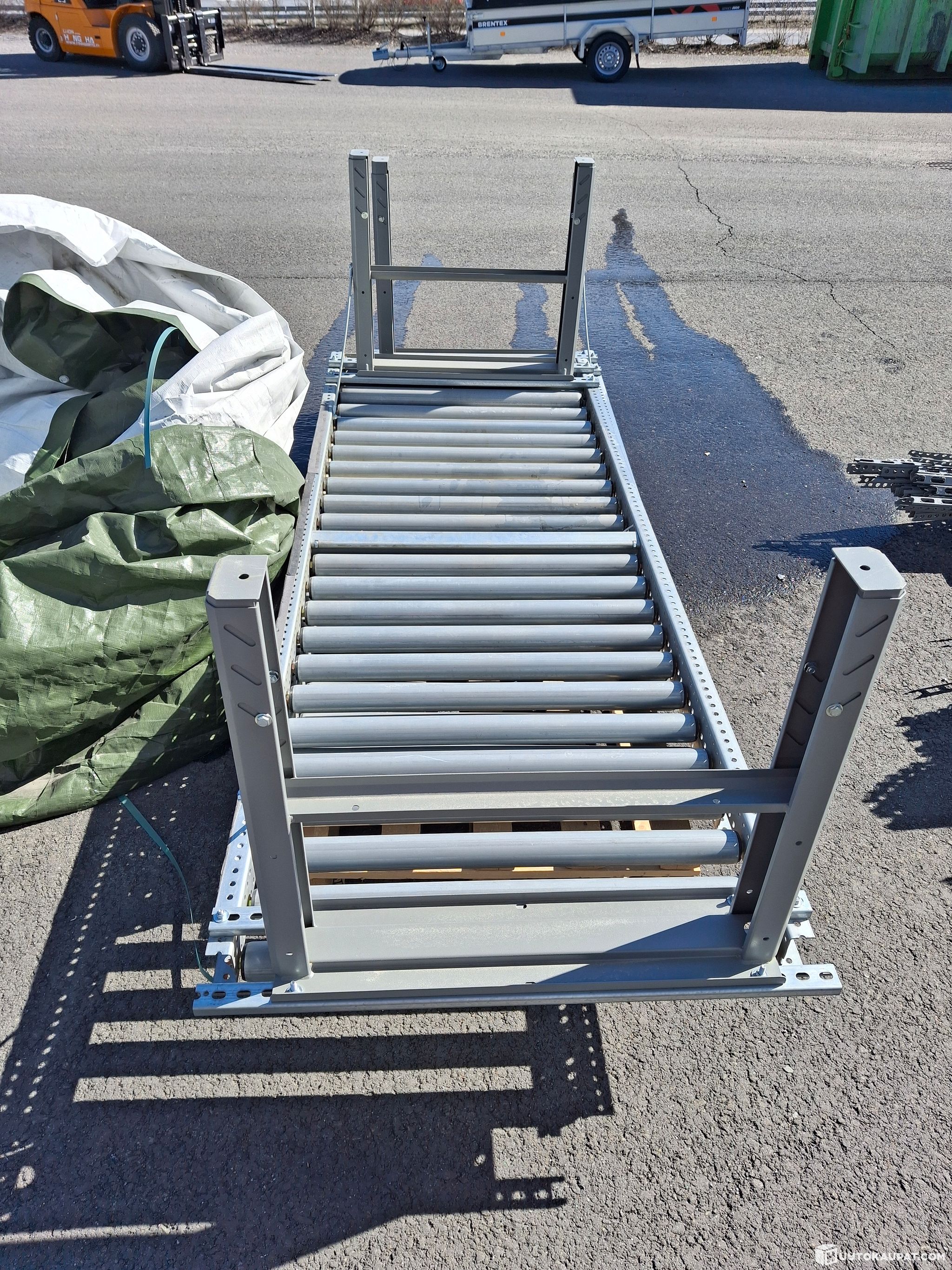 Varastolla rullaratana käytössä ollut rullapöytä, jonka kokonaispituus 5 metriä.