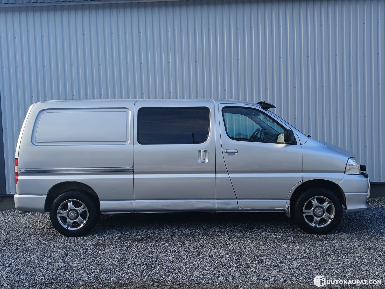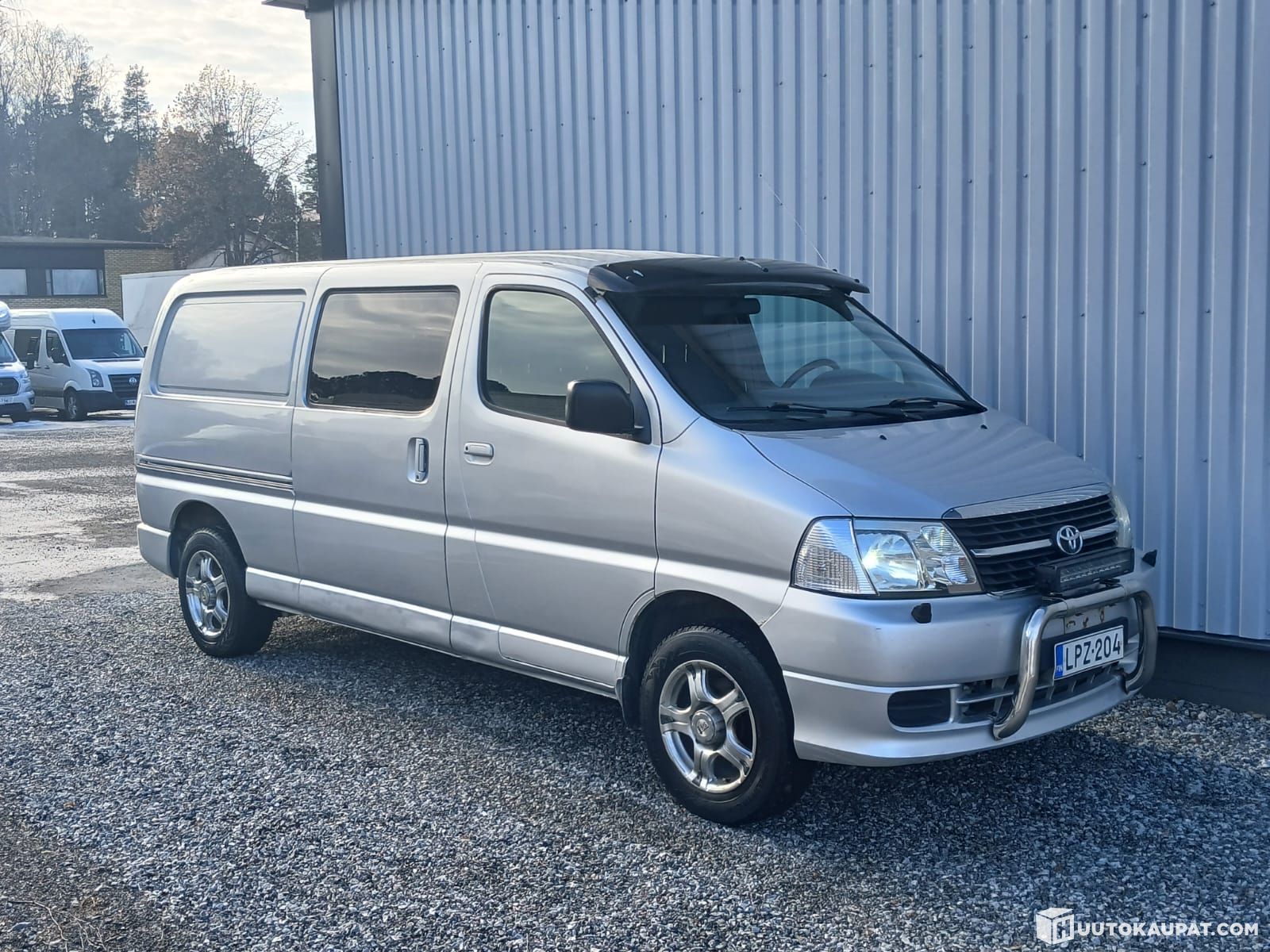 Pakettiautojen ehdoton ykkönen eli isolamppuinen pitkä läpijuostava neliveto Hiace! Ulkonäköä hiukan tuunailtu valoraudalla ja aurinkolipalla, komea ilmestys!
