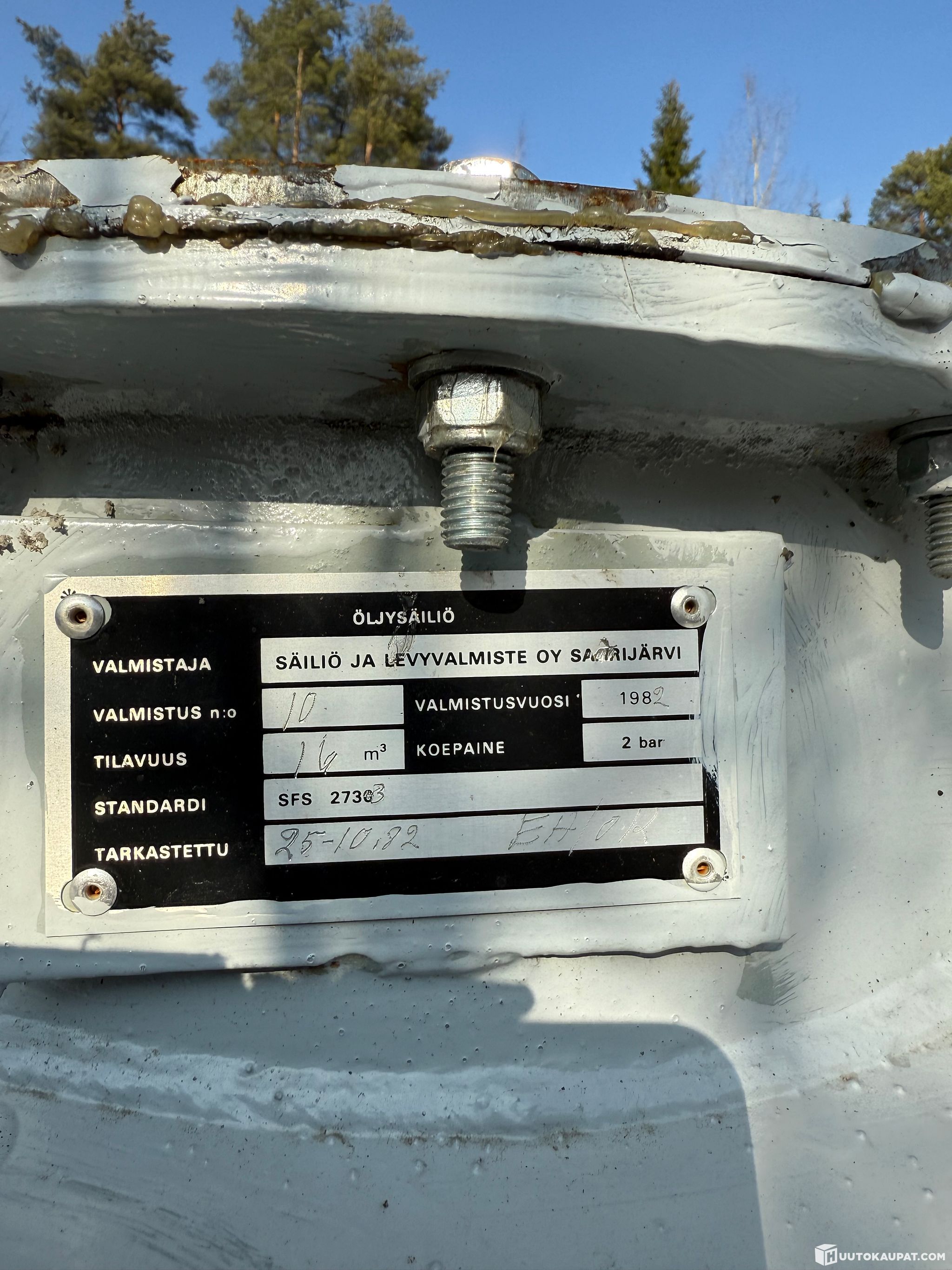 Tehdas kunnostettu ja tarkastettu öljysäiliö valumaaltaalla, uusi ylitäytön estin mukaan.