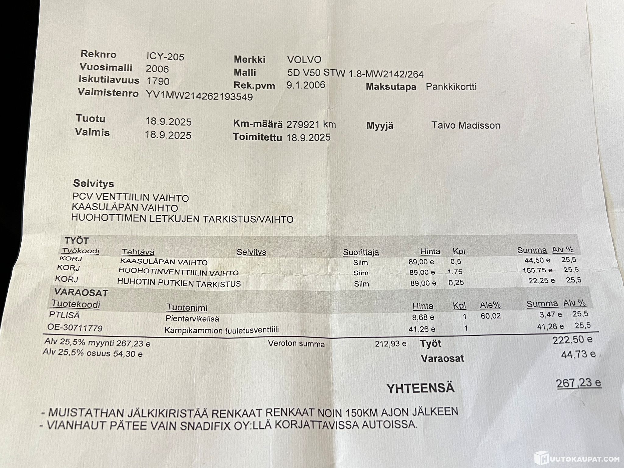 Rinta-Joupin Autoliike Oy ilmoittaa, Huutokaupat.com myy
