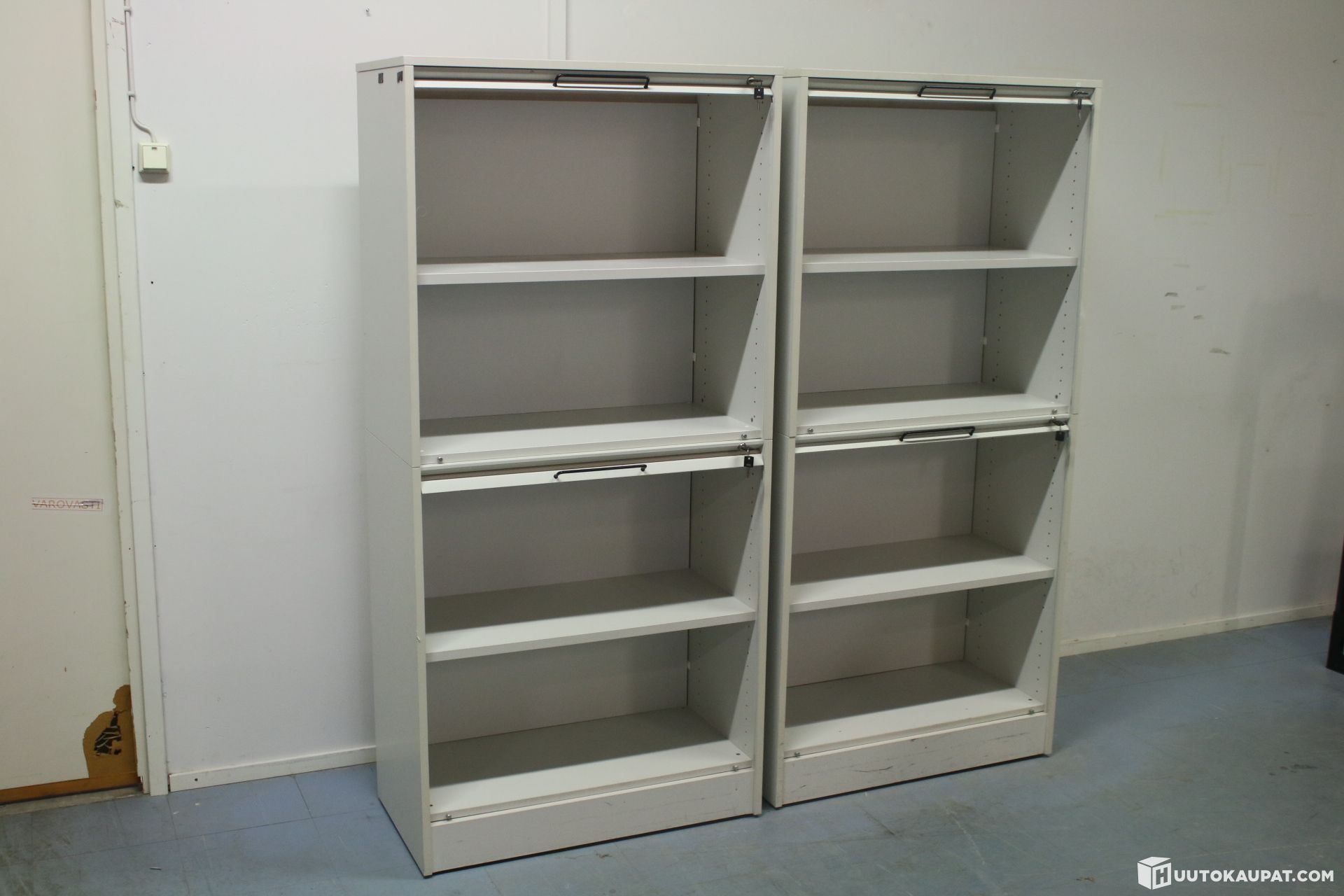 Kaapit ovat tukevia ja käytännöllisiä säilytysratkaisuja. Normaalia käytön jälkeä voi olla, mutta täysin käyttökelpoiset.