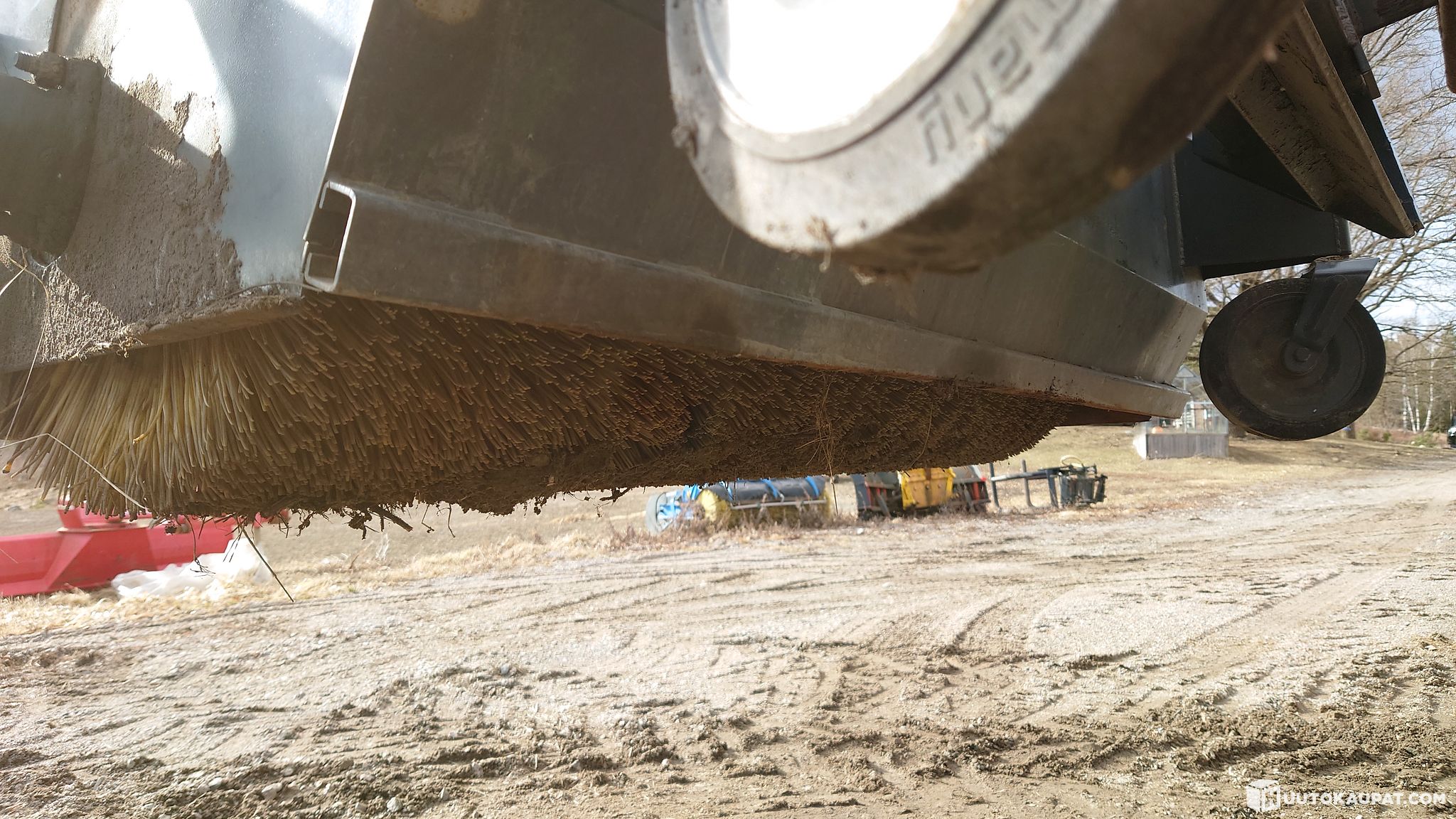 Toisesta etukannatuspyörästä kumipinta irronnut, kannattaa uusia vaikkei käytännössä ajoa haittaakaan.