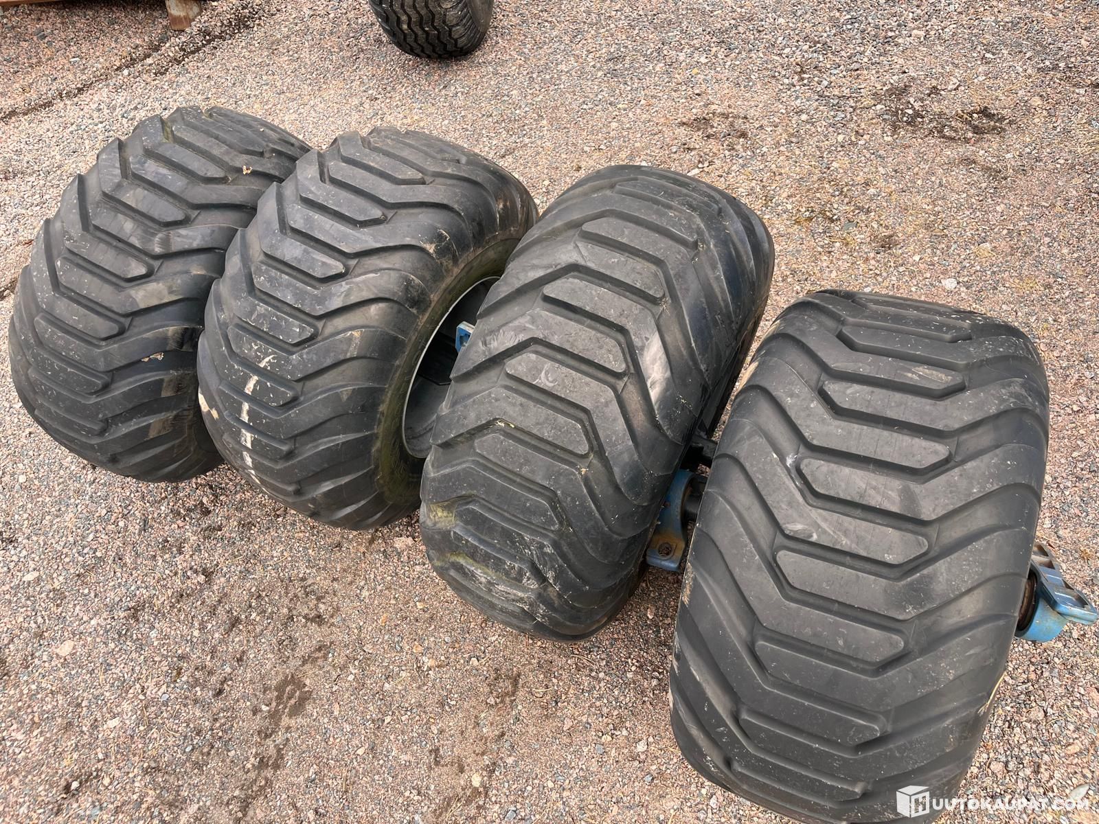 Hyväkuntoiset kärryn renkaat 6-pulttiselle navalle.