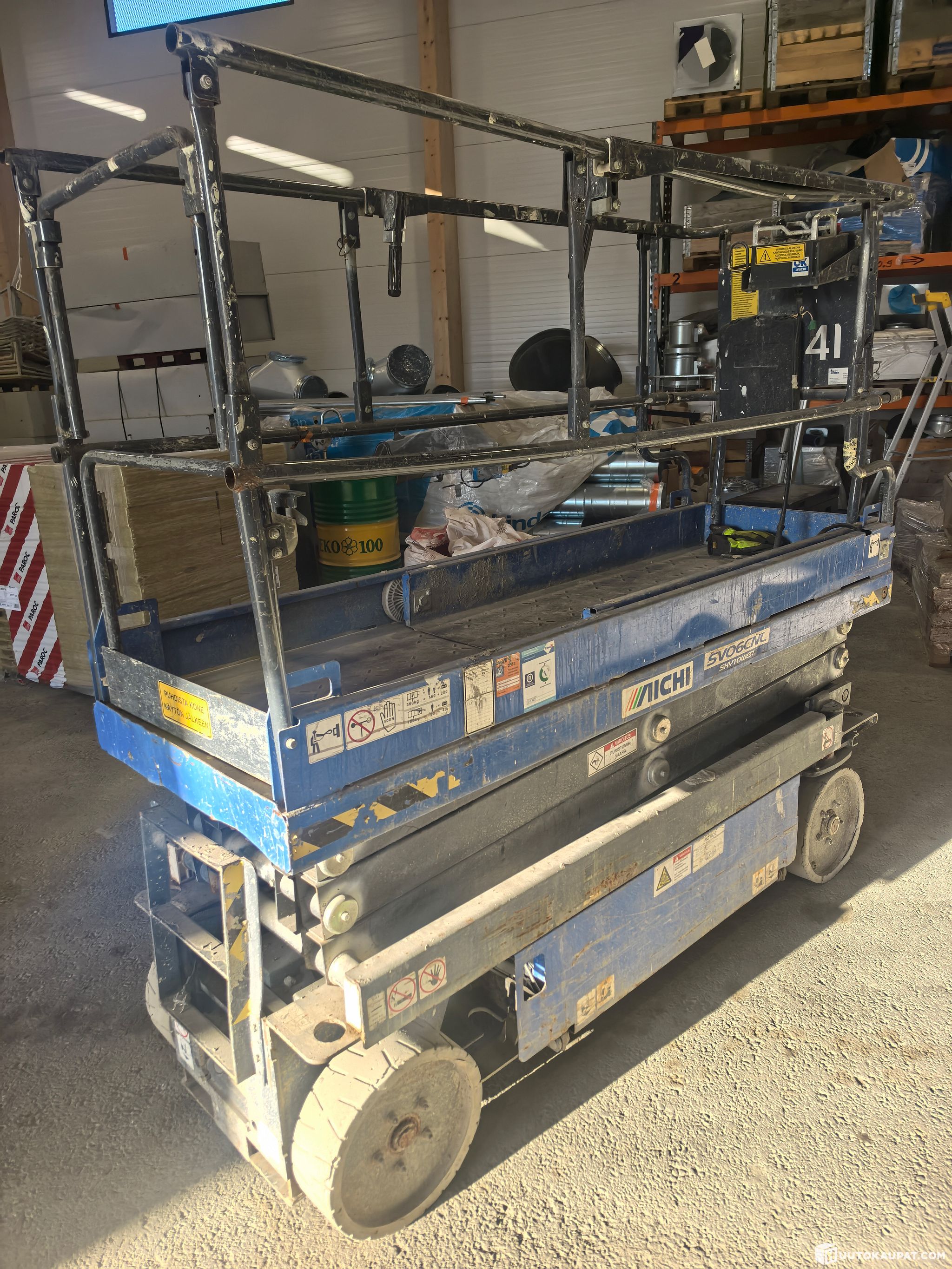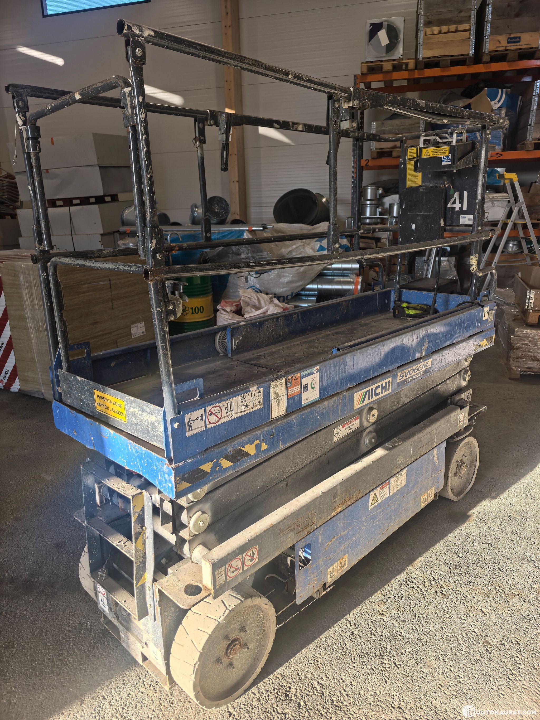 Myyntiin saksilava nostin Aichi SV06 CNL. Laite ajaa hyvin, mutta nostaessa ei nouse paria metriä korkeamalle. Syytä emme tiedä