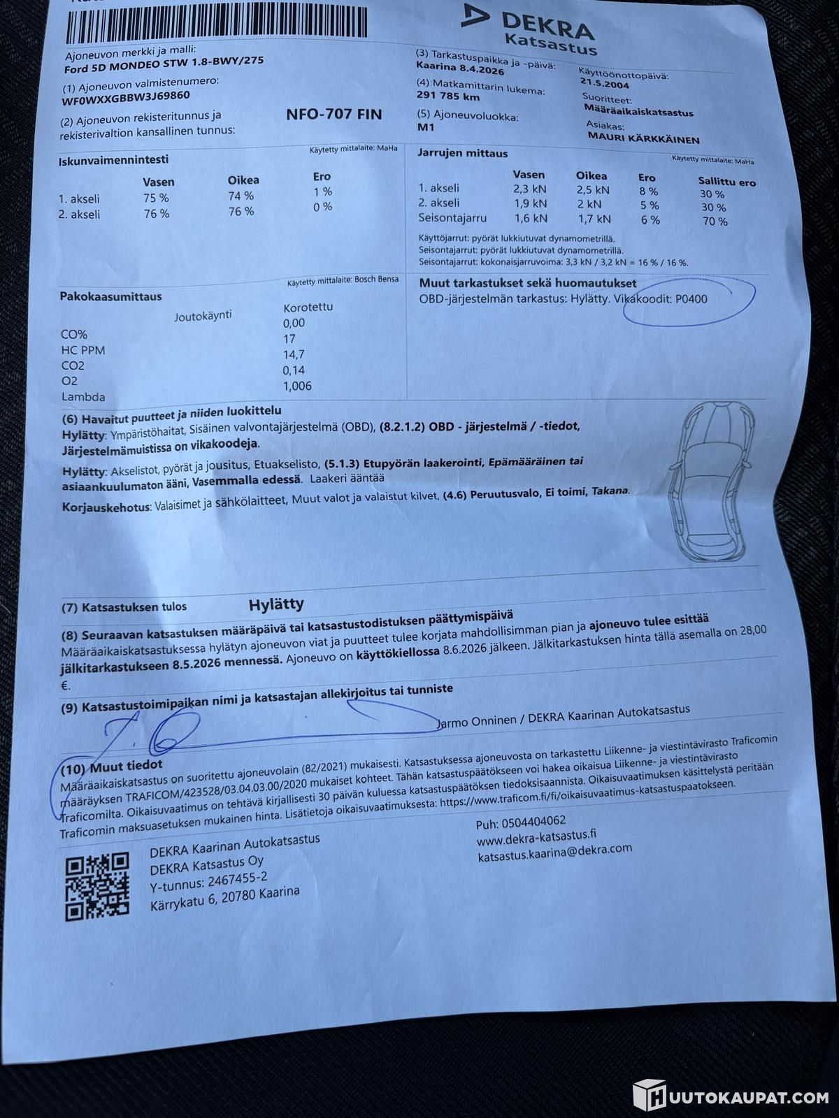 Hylätty katsastuksessa, katso vikalista kuvista. Ajoaika 8.6.2026 saakka
