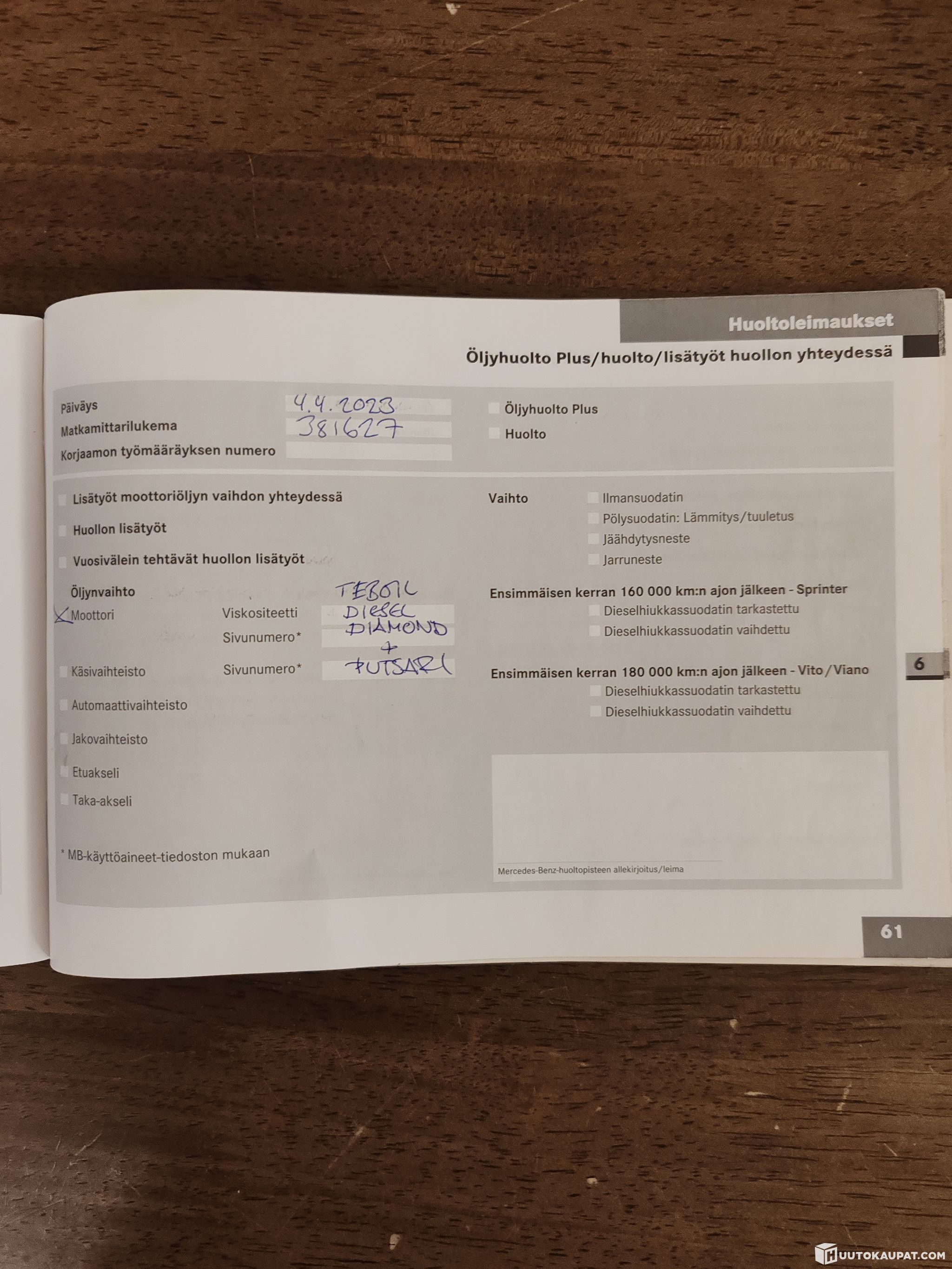 Korjaamolla huomattu mm. että öljynsuodatin on täynnä metallikilkettä.