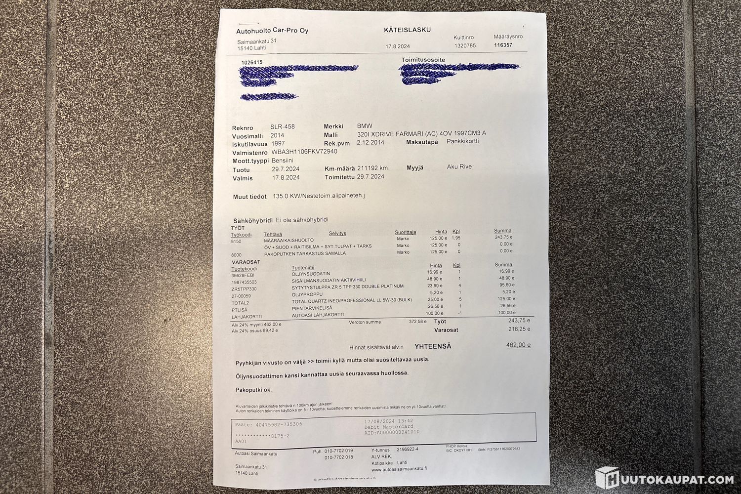 Huomioithan, että huutokauppaan osallistuminen ilman ostoaikomusta on kiellettyä. On sinun vastuullasi tutustua kohteeseen ja siitä annettuihin tietoihin ennen tarjoamista, tervetuloa myös tutustumaan autoon paikan päälle. Mikäli kohteesta herää mitä tahansa kysyttävää, olethan ystävällisesti yhteydessä meihin tai Huutokaupat.comin asiakaspalveluun, kiitos!