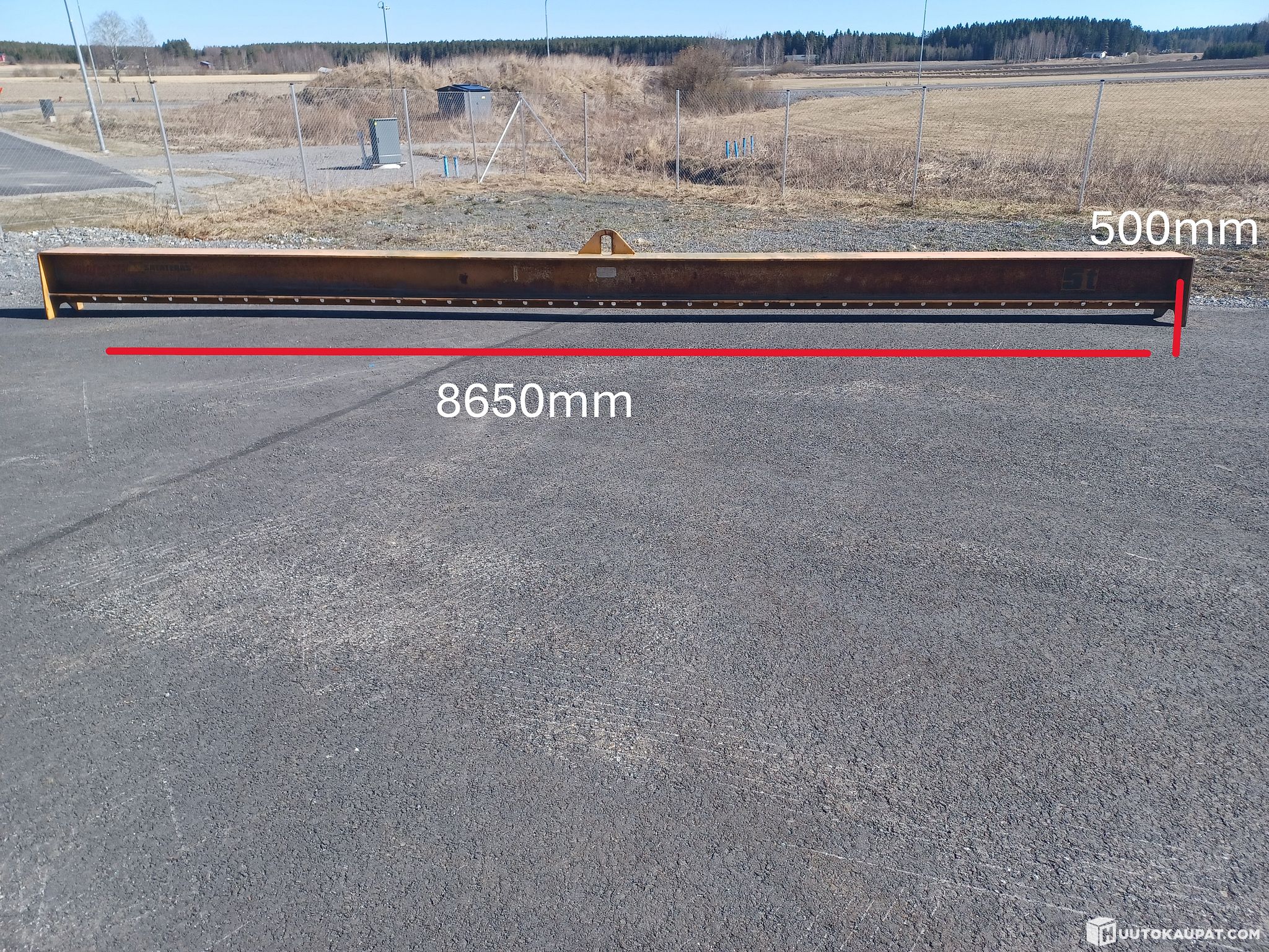 Käytöstä poistettu nostopuomi. Säilytetty pihalla poiston jälkeen.