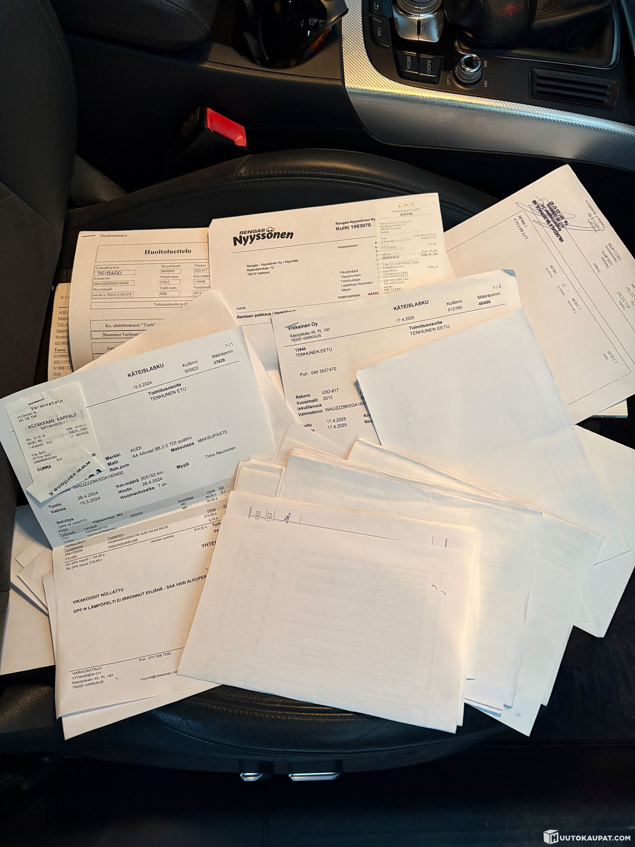 mutta runsaasti kuitteja tehdyistä huolto-ja korjaustöistä.