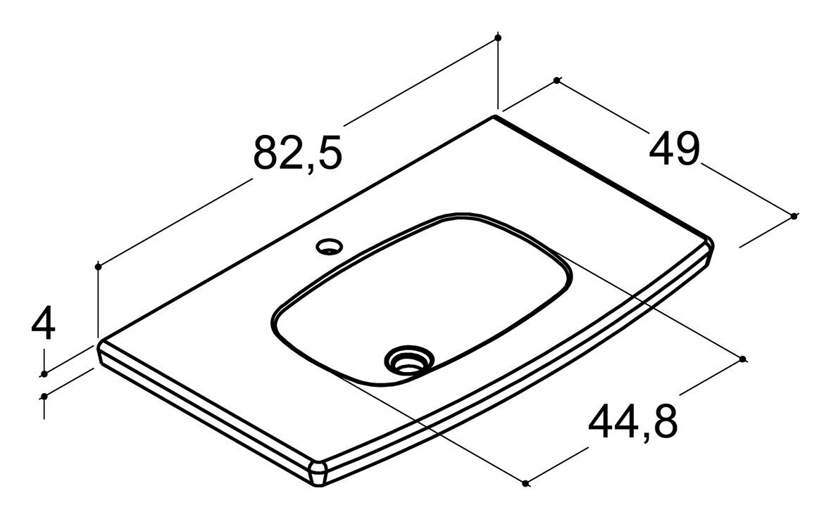 Dansani YOU -sarjan 81 cm leveä kalusteallas, väriltään valkoinen. Allas on valmistettu posliinista. Altaassa on hanareikä keskellä ja ei ylivuotoa.