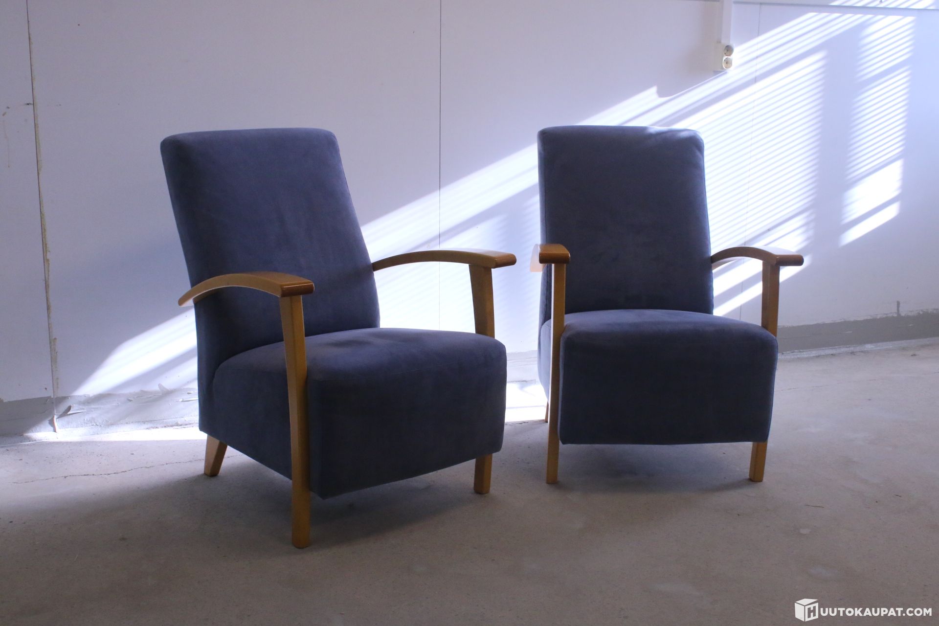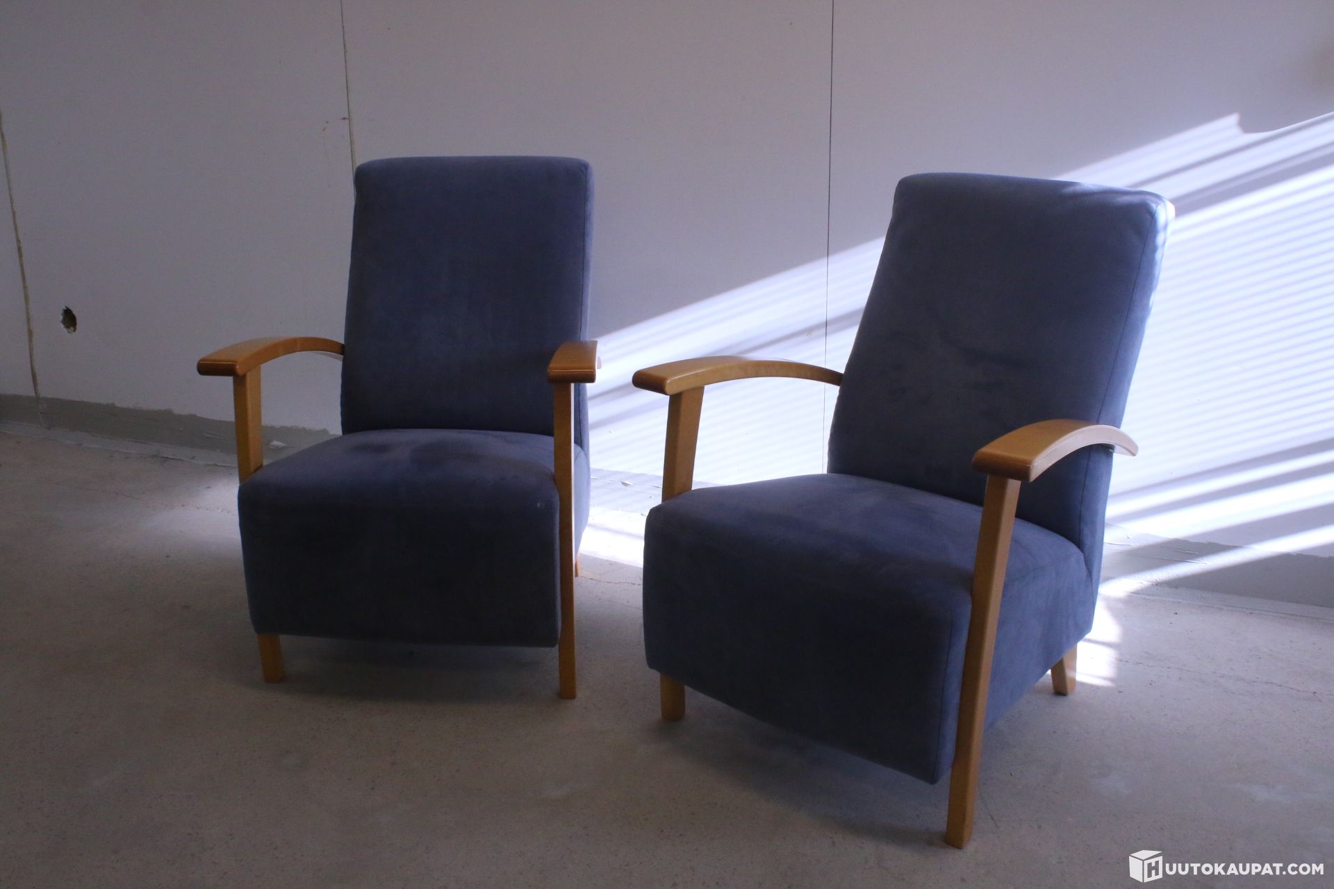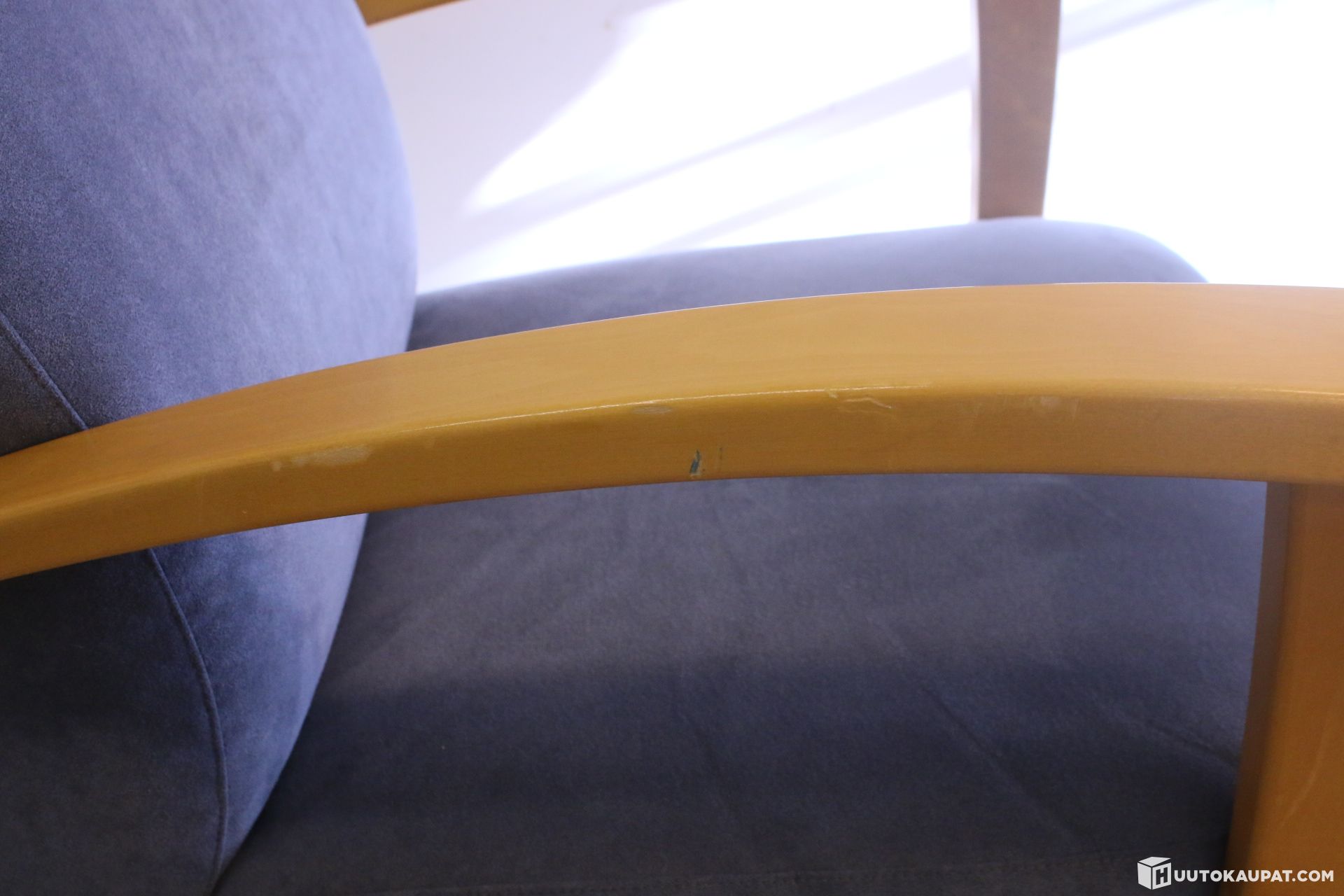 Kunto: Hyvä ja tukeva. Verhoilu on siisti. Käsinojissa on hieman elämän tuomaa jälkeä (ks. lähikuva).