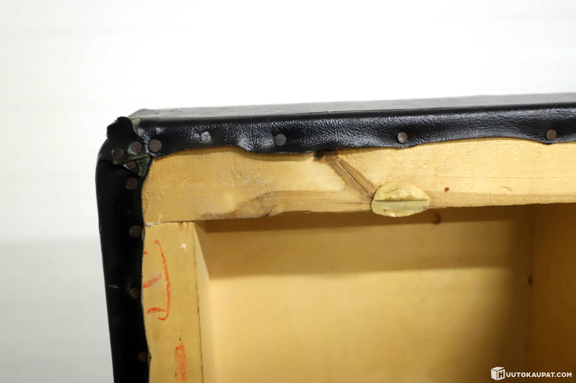 Puuosissa on käytön jälkeä, istuinverhoilun etuosassa on kulumaa, muutama palkeenkieli.