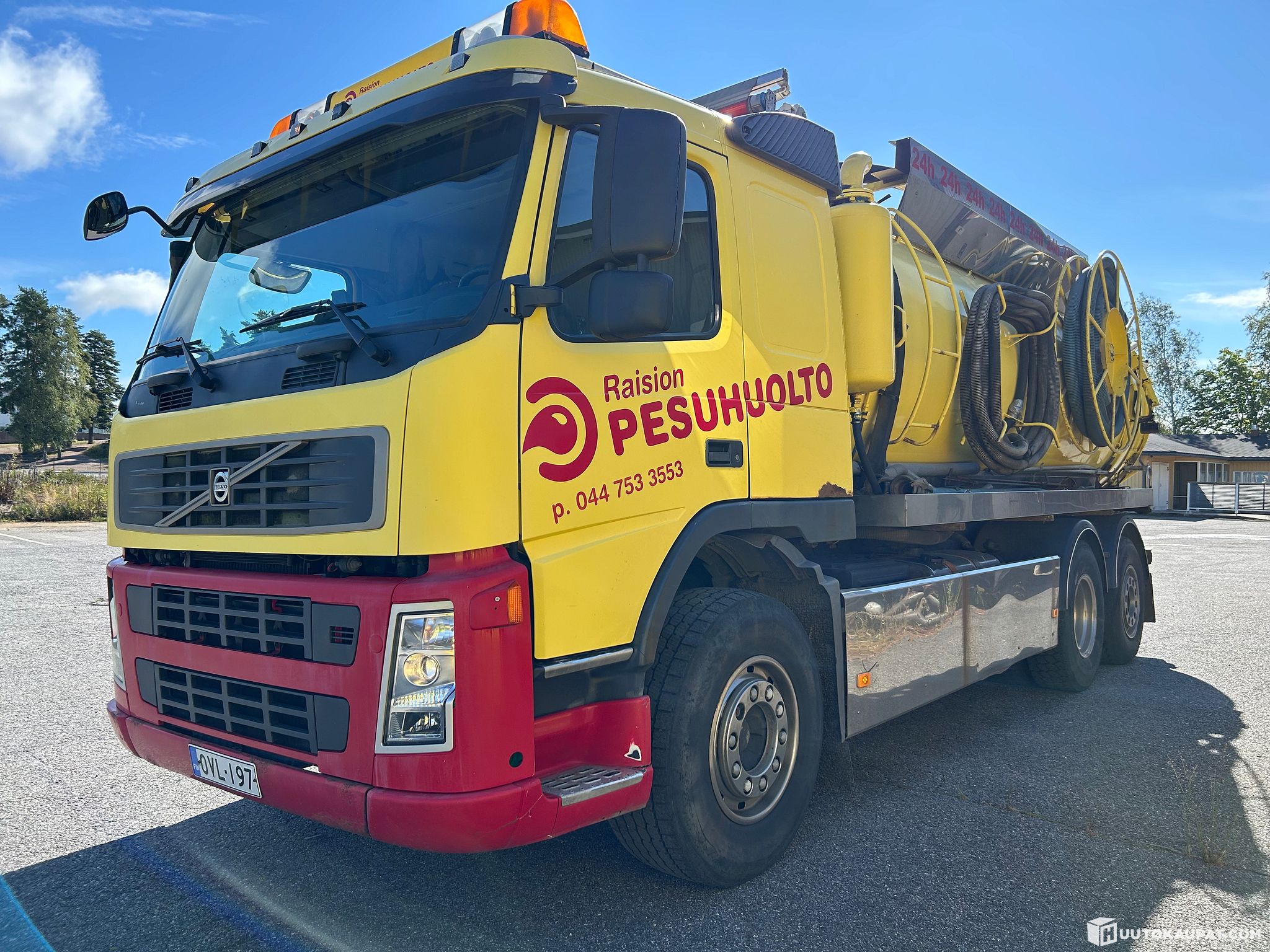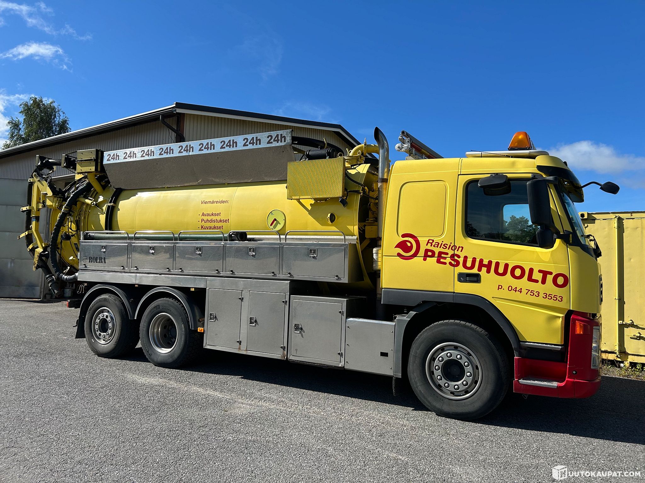 Myyntiin toimivana käytöstä poistettu imuauto. Ollut viemärihuollon imu- ja pesutöissä, ja nyt suoraan ajosta myyntiin – ei seissyt ulkona rapistumassa, vaan alkuvuoden lämpimässä hallissa.