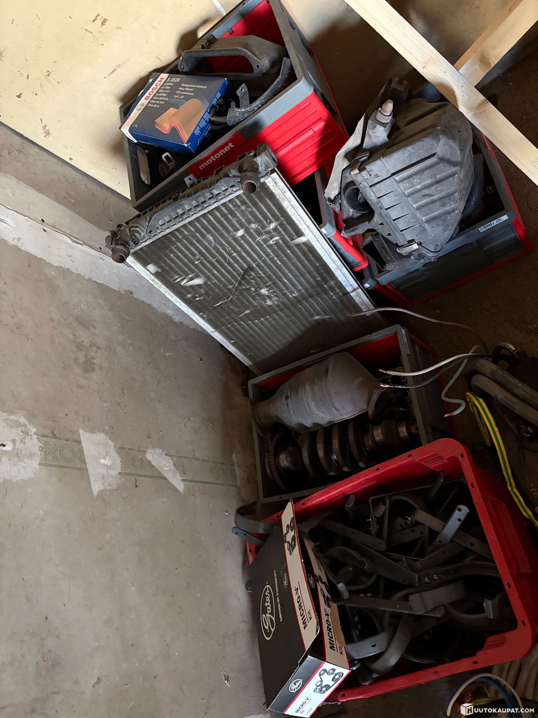 Mukaan saa 3 kierrosta vanteita yhdet kesärenkaat aluvanteilla (sakoilla) yhdet nastat aluvanteilla (yksi puhki muut heikossa hapessa) ja yhdet nastat peltivanteilla (lähes uudet alla tällähetkellä). Myös laatikollinen erinäköisiä osia mm. Takavalot, TA-technixin madallus alusta, AEB 1.8T moottori purettuna lisälaitteineen ja s line ratti joka purettu ja riisuttu uudelleen verhoilua varten.