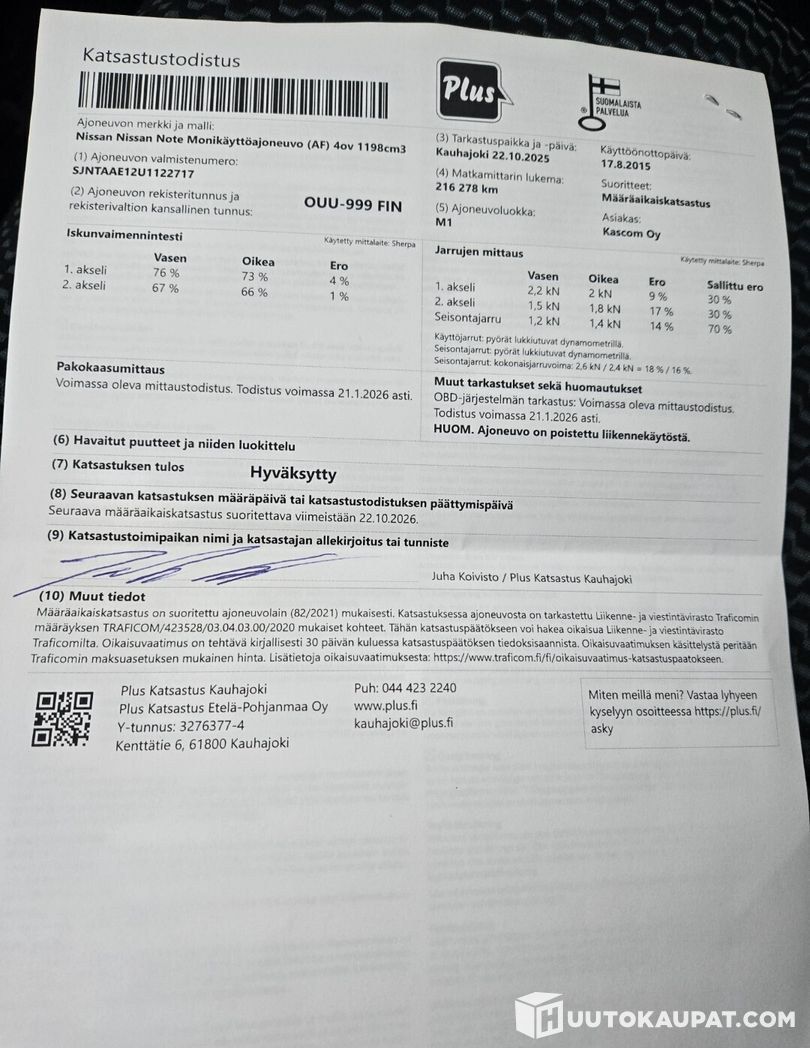 Auton huutokauppailmoitus on tehty myyjän havaintoihin perustuen, autossa saattaa olla piileviä vikoja tai virheitä, mitä myyjä ei ole huutokauppailmoitusta laatiessa havainnut. Autoa on mahdollista koeajaa ja tutkia myymälässämme aukioloaikoina. Huomioithan, että huutokauppaan osallistuminen ilman ostoaikomusta on kiellettyä. On sinun vastuullasi tutustua kohteeseen ja siitä annettuihin tietoihin ennen tarjoamista. Mikäli kohteesta herää mitä tahansa kysyttävää, olethan ystävällisesti yhteydessä meihin tai Huutokaupat.comin asiakaspalveluun, kiitos!