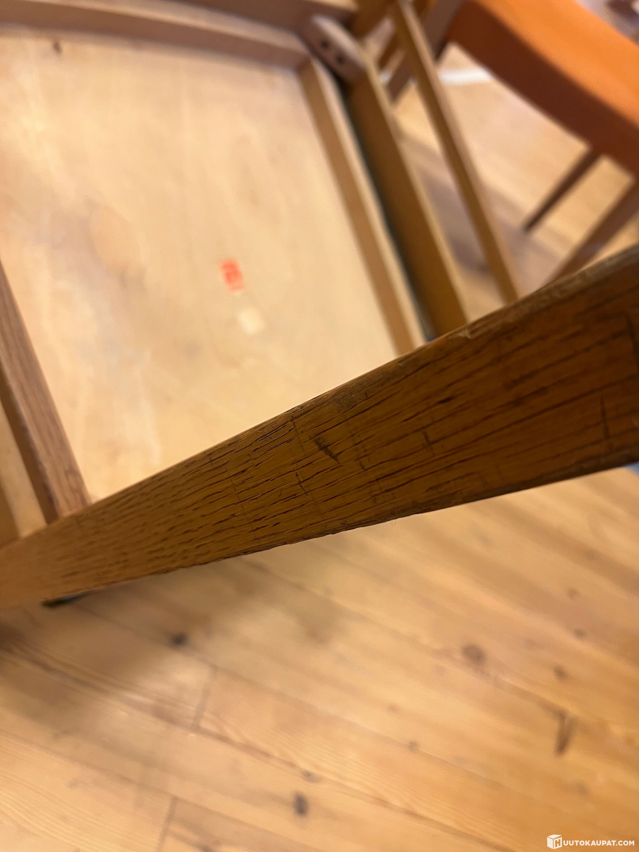 Kunnoltaan ikäisekseen hyvät, ajansaatossa tullut käytönjälkiä puurunkoihin sekä pieniä jälkiä keinonahkaan.