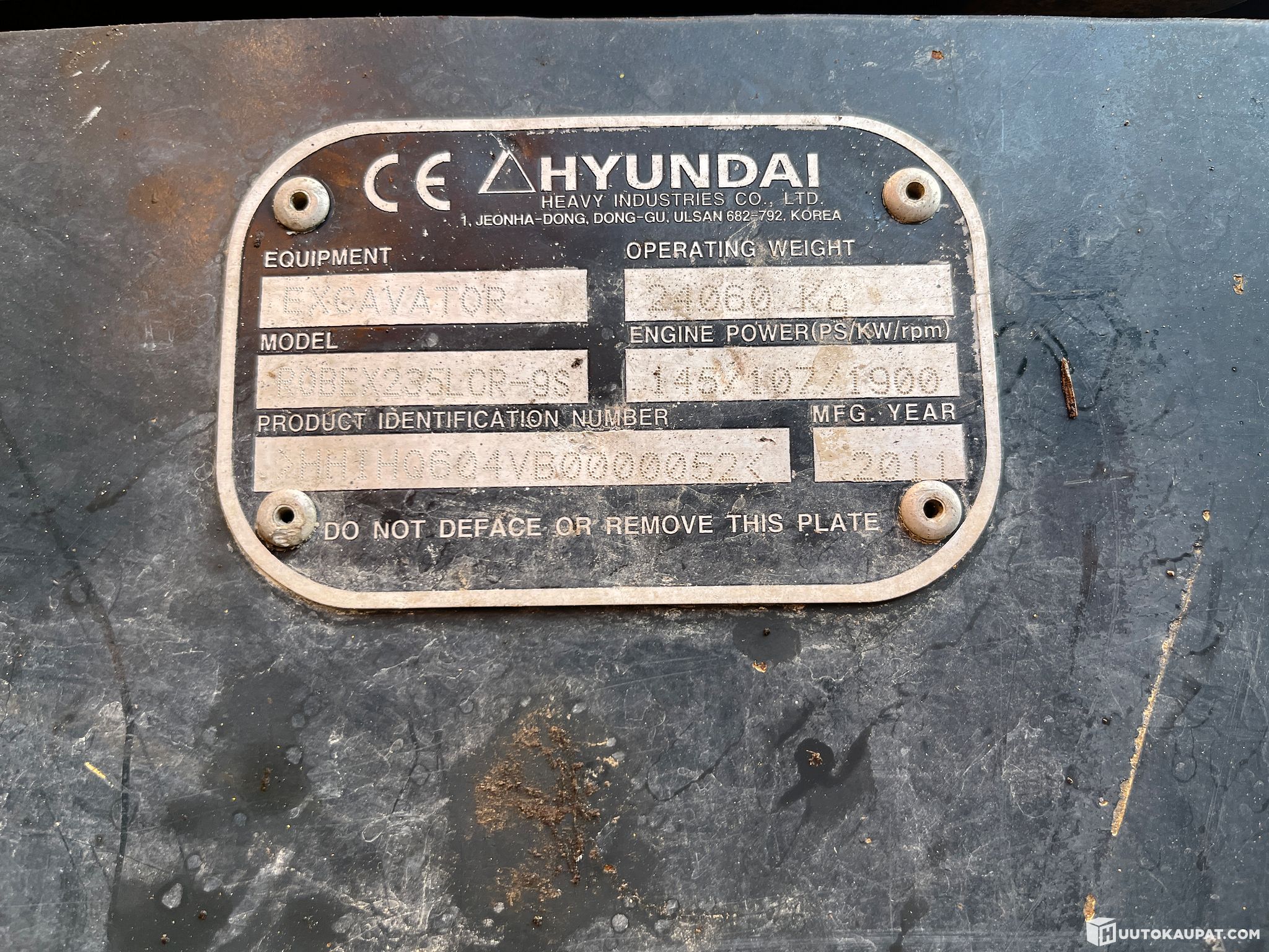 Tela-alustainen Hyundai Robex235LCR-9 vuosimalli 2011. Päivittäisestä käytöstä.
