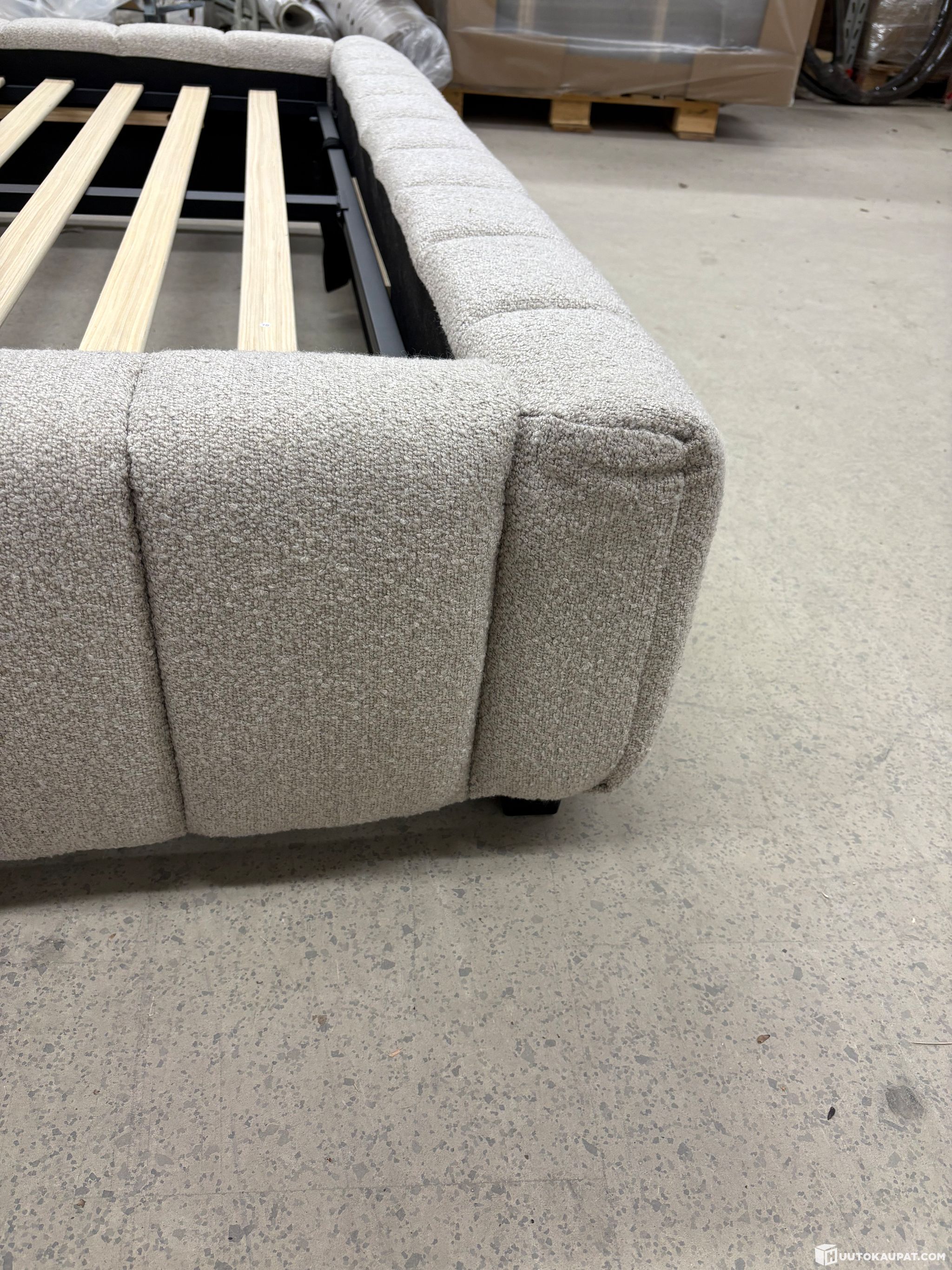 Säilytystilalla varustettu Muhku lift tuo makuuhuoneeseen rauhallista pehmeyttä ja arkea helpottavaa käytännöllisyyttä. Kauniisti pystysuunnassa tikattu runko on verhoiltu eläväpintaisella Ökö-tex sertifioidulla buklée-kankaalla, joka tekee kokonaisuudesta kutsuvan ja lämpimän. Muhku tuntuu yhtä aikaa ryhdikkäältä ja rennolta, juuri sopivalta makuuhuoneeseen, jossa halutaan levätä kunnolla.