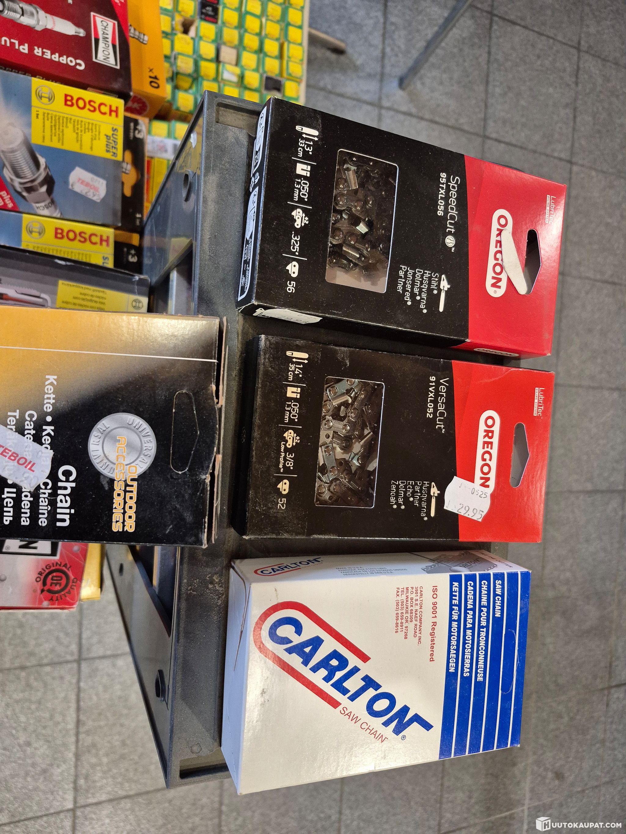 Mukaan tulee myös erilaisia sulakkeita sekä moottorisahan teräketjuja.