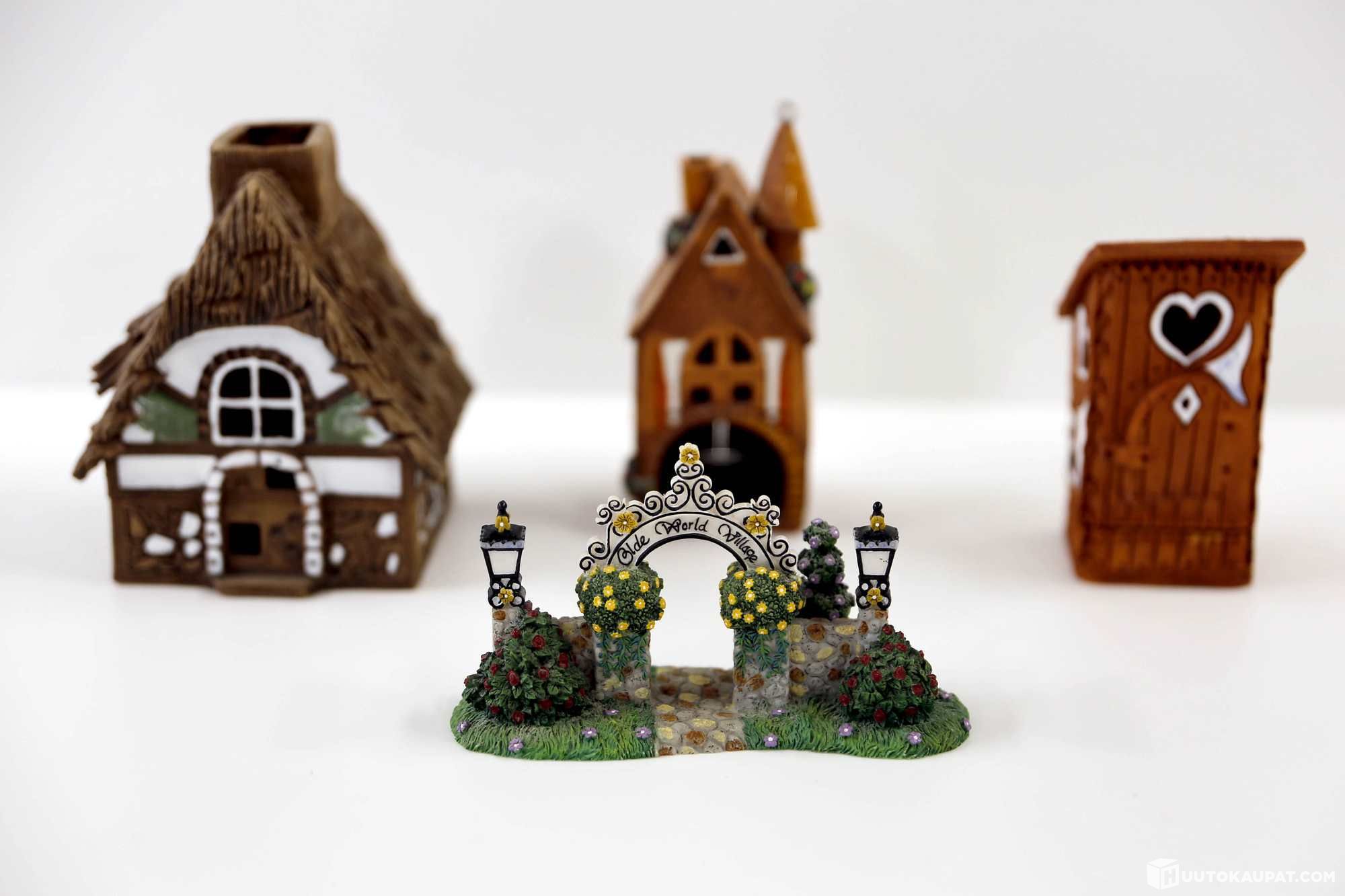 Satumainen kyläsetti: 3 keraamista liettualaista taloa + PartyLite-portti