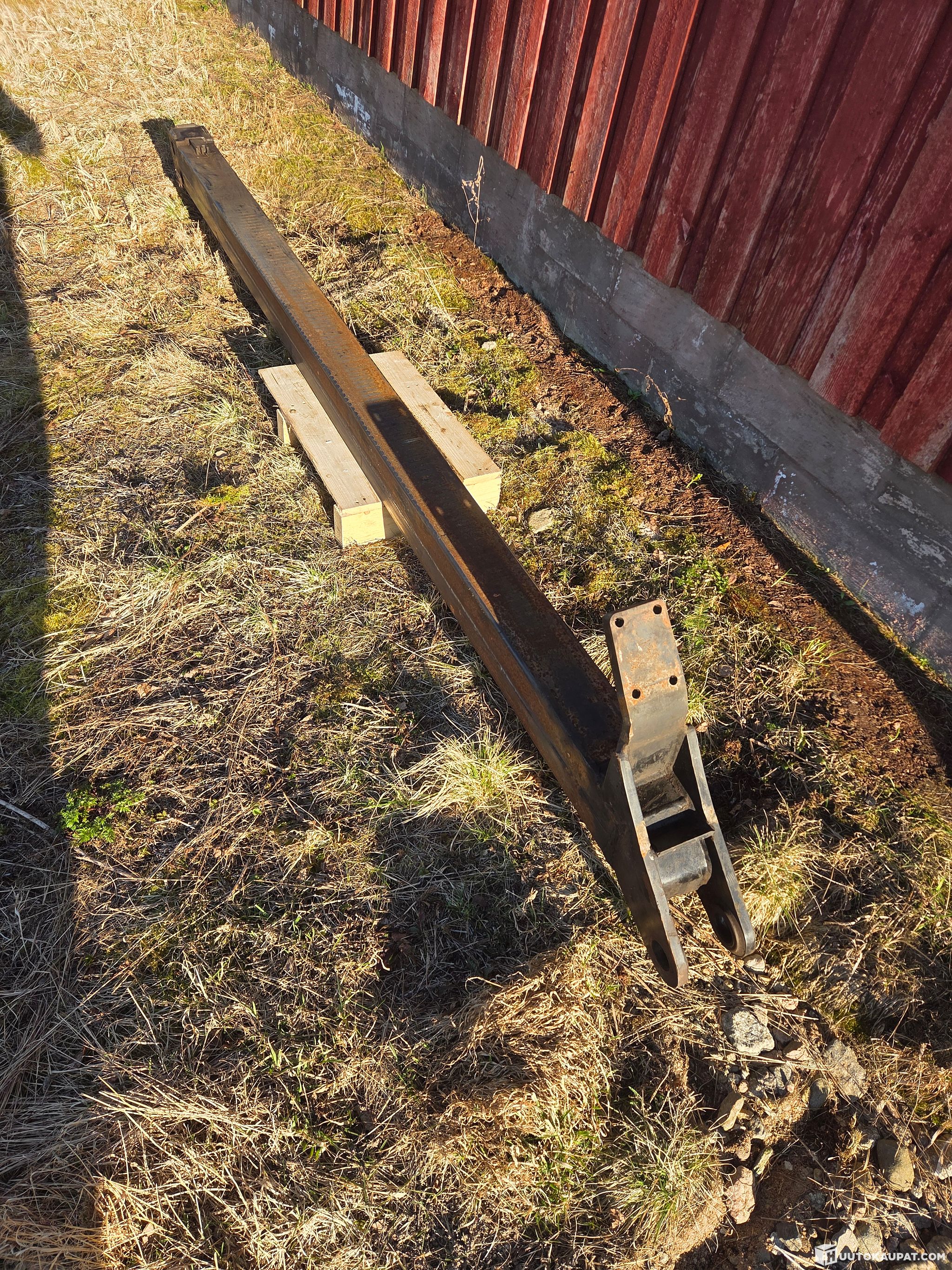 Huutokaupan nurkkiin jäänyt Loglift puutavaranosturin kärkijatke puomi.