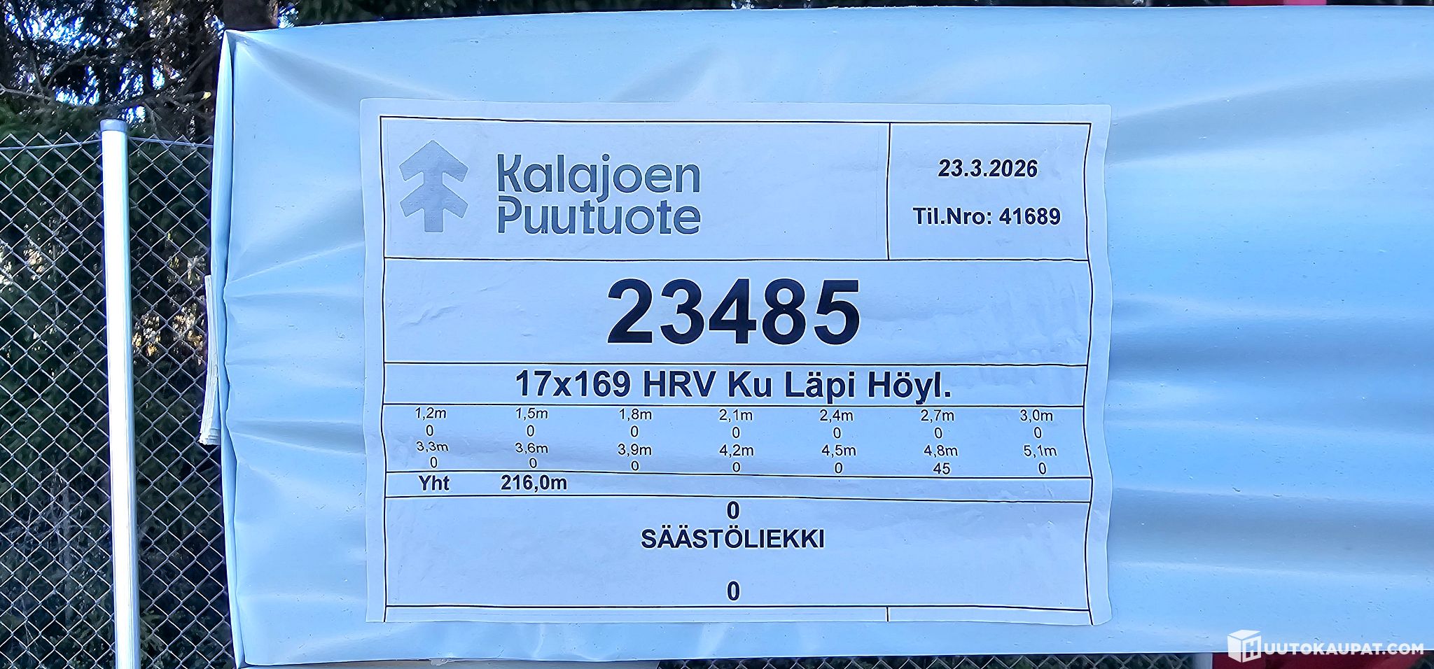 Yhteensä: 216metriä = 36m2