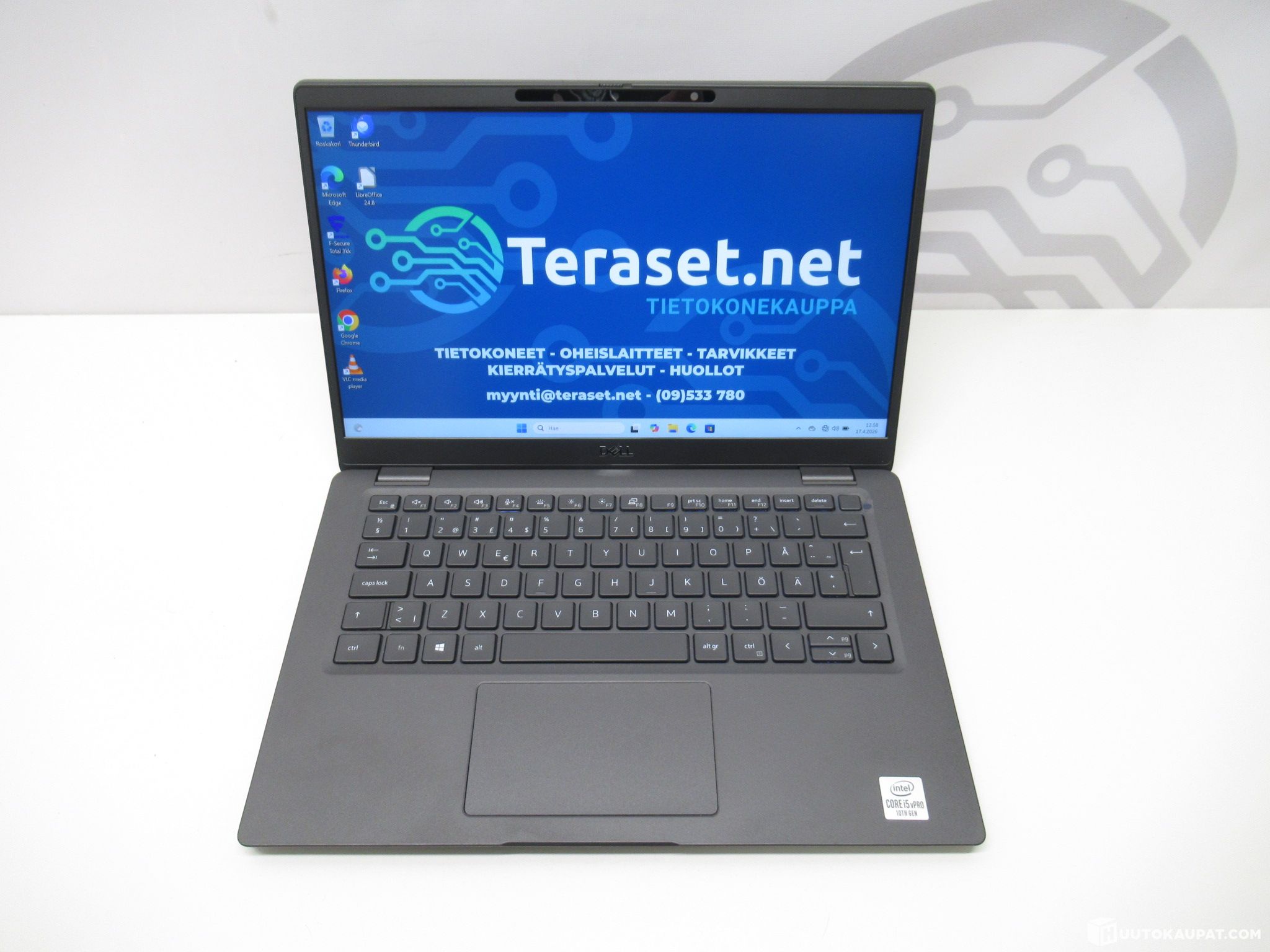Myydään yrityskäytöstä palautunut ja tietoturvallisesti uudelleenasennettu Dell Latitude 7310 läppäri. Koneeseen on juuri asennettu puhdas ja tuore Windows 11 Pro käyttöjärjestelmä, sekä pieni valikoima ilmaisohjelmia. Mukana myös 3 kk kokeilujakso F-Secure Total ohjelmistopakettiin.