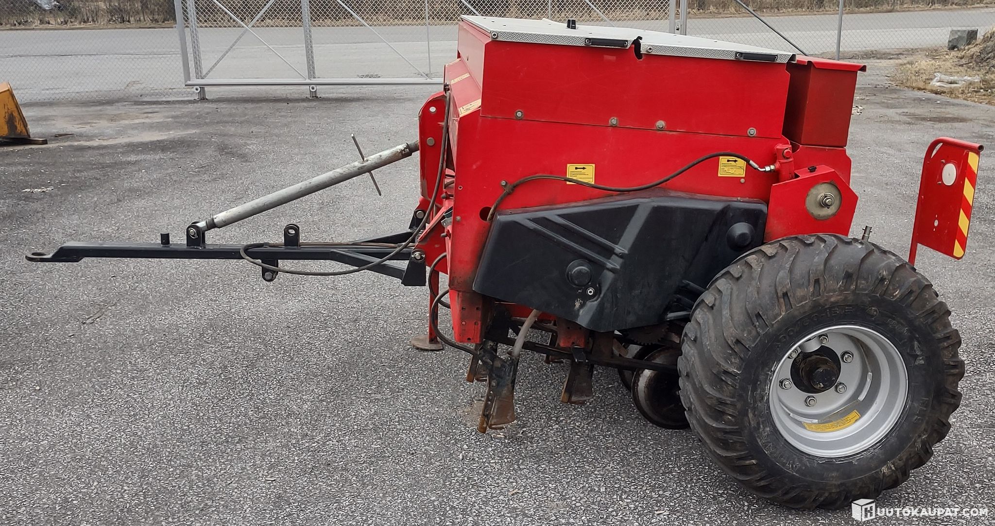 Huudettavana hyvässä kunnossa oleva hinattava kylvölannoitin piensiemenlaitteella.