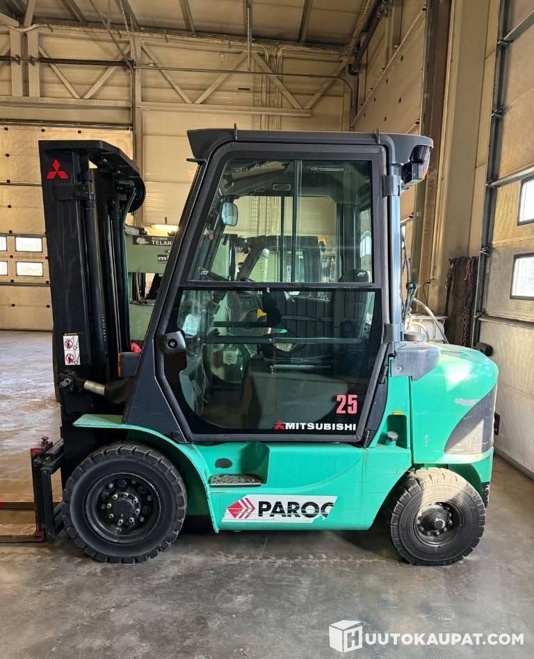 Pienituntinen 2,5tn Mitsubishi dieseltrukki. Trukki nähtävillä Humppilan toimipisteellä.