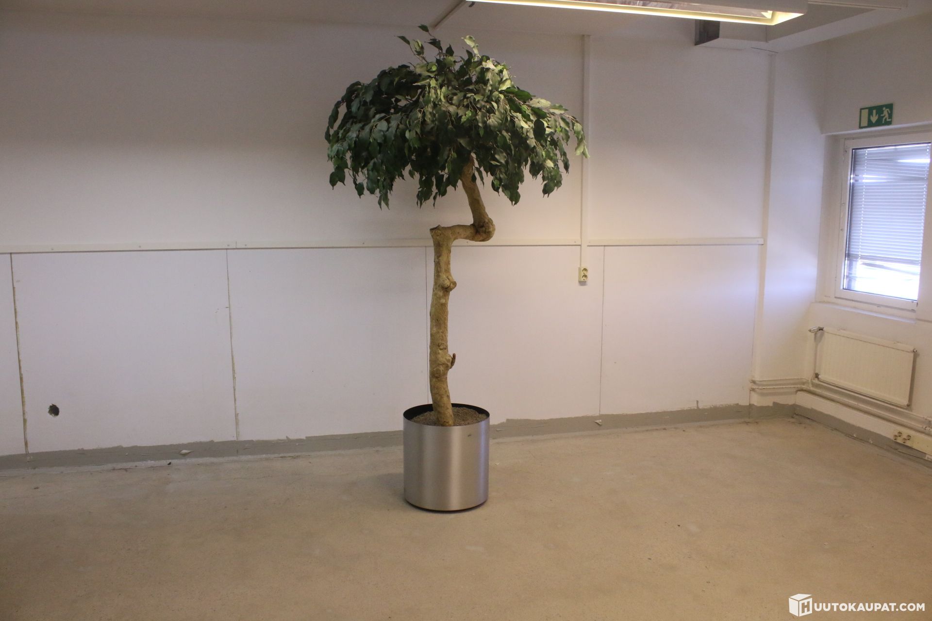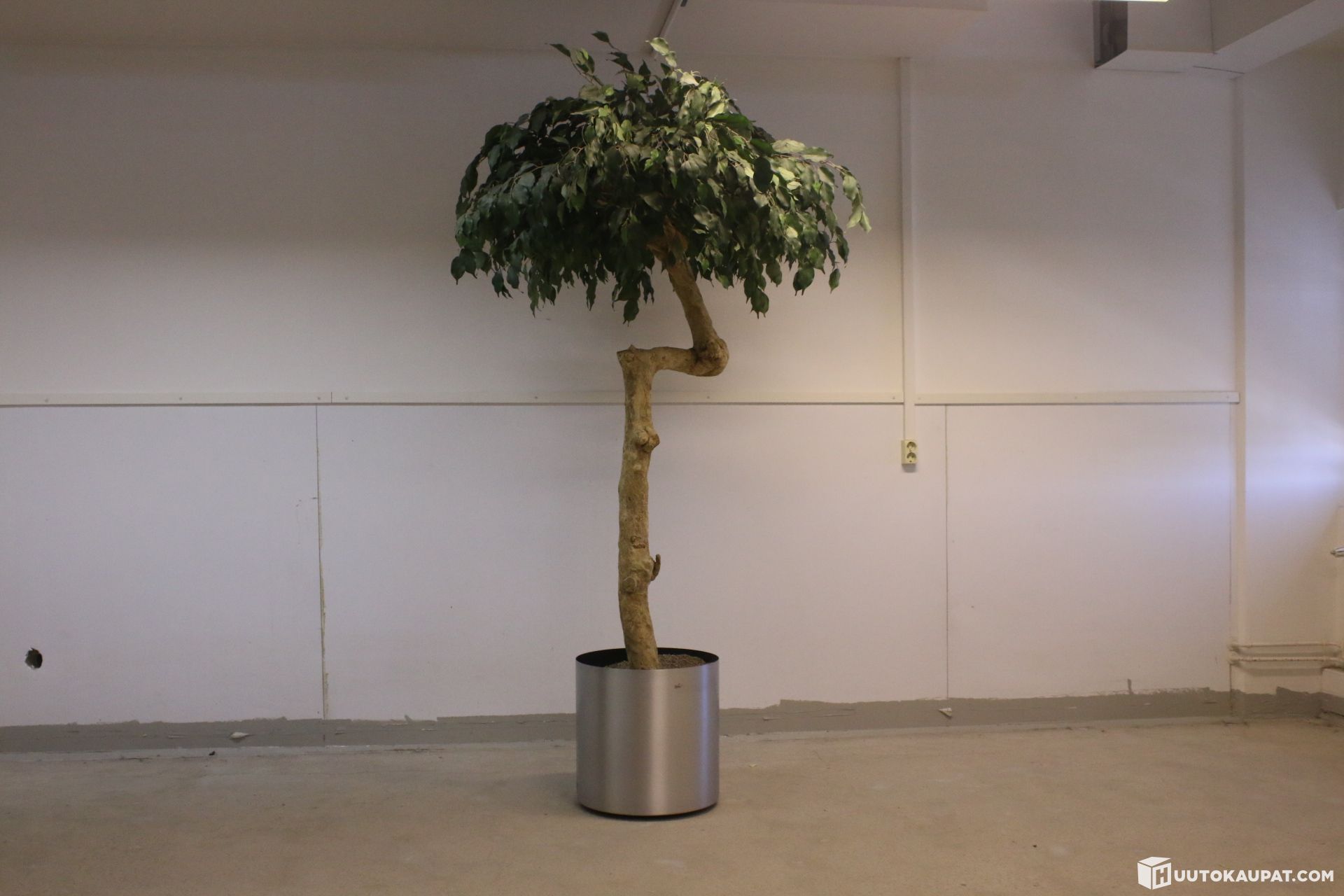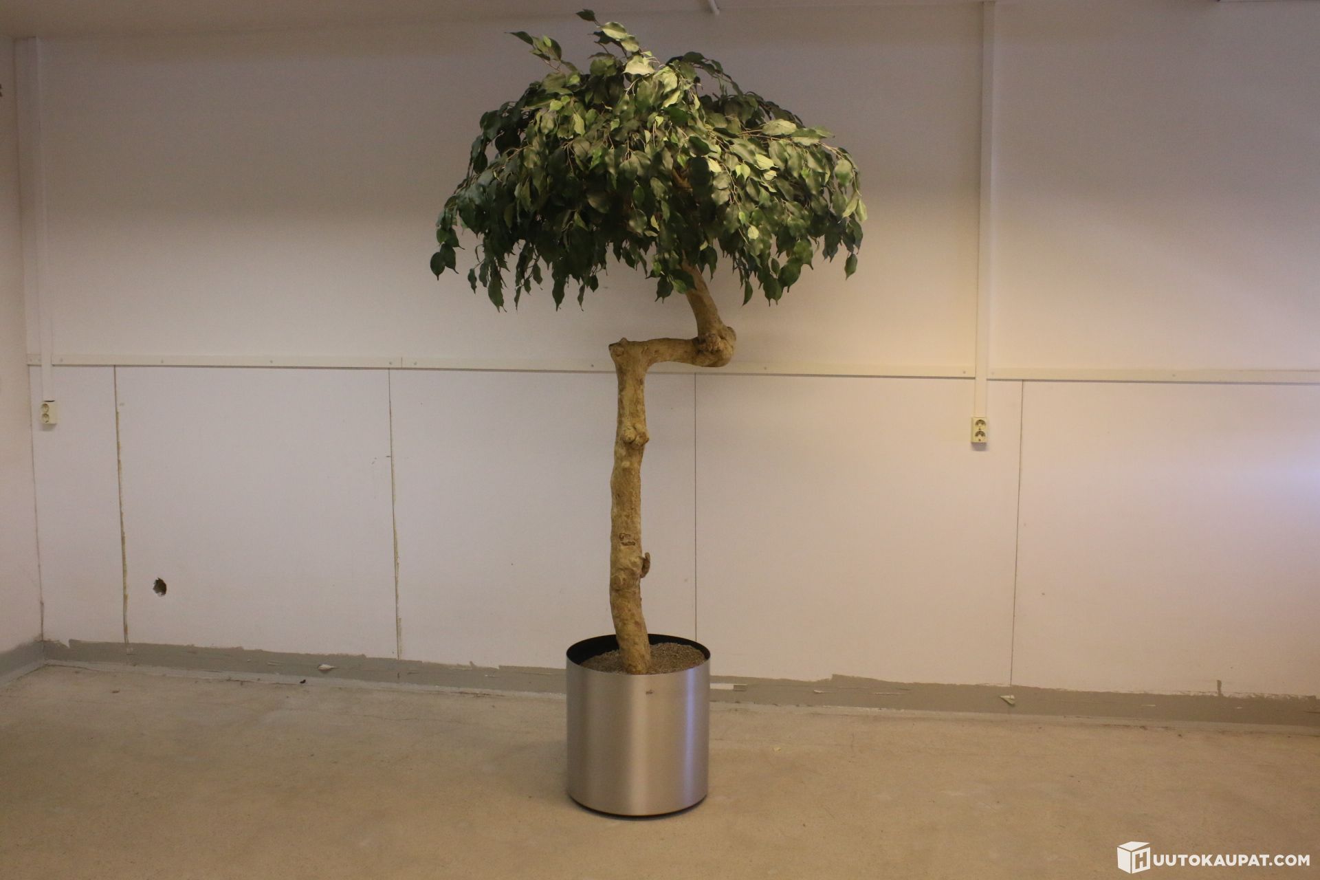 Myydään näyttävä, erittäin aidon näköinen ja kookas tekopuu (esim. Ficus tai mangopuu-tyylinen) jossa on upea, luonnonmukaisesti muotoiltu puurunko. Puu on istutettu tyylikkääseen, harjattuun metalliseen design-ruukkuun.