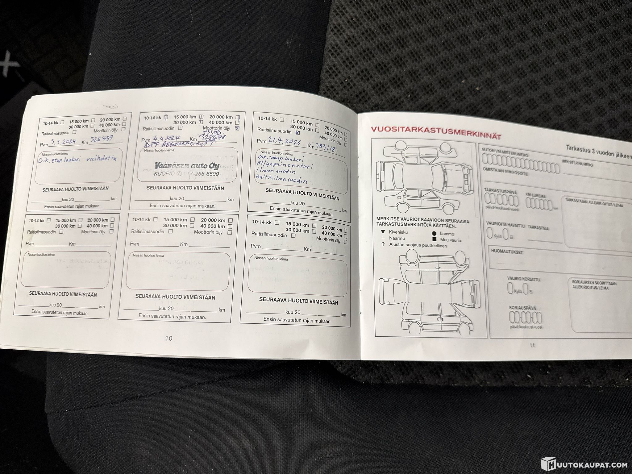 Öljyt olisi syytä vaihtaa, auton mukana tulee jarrupaloja sekä öljynsuodatin.