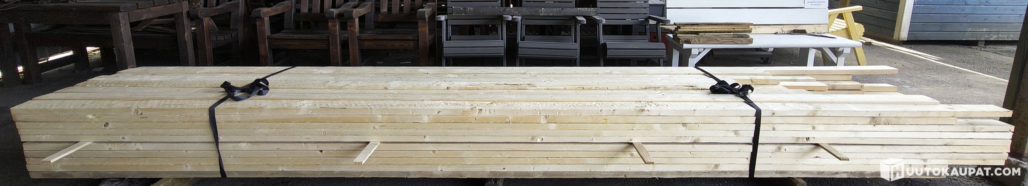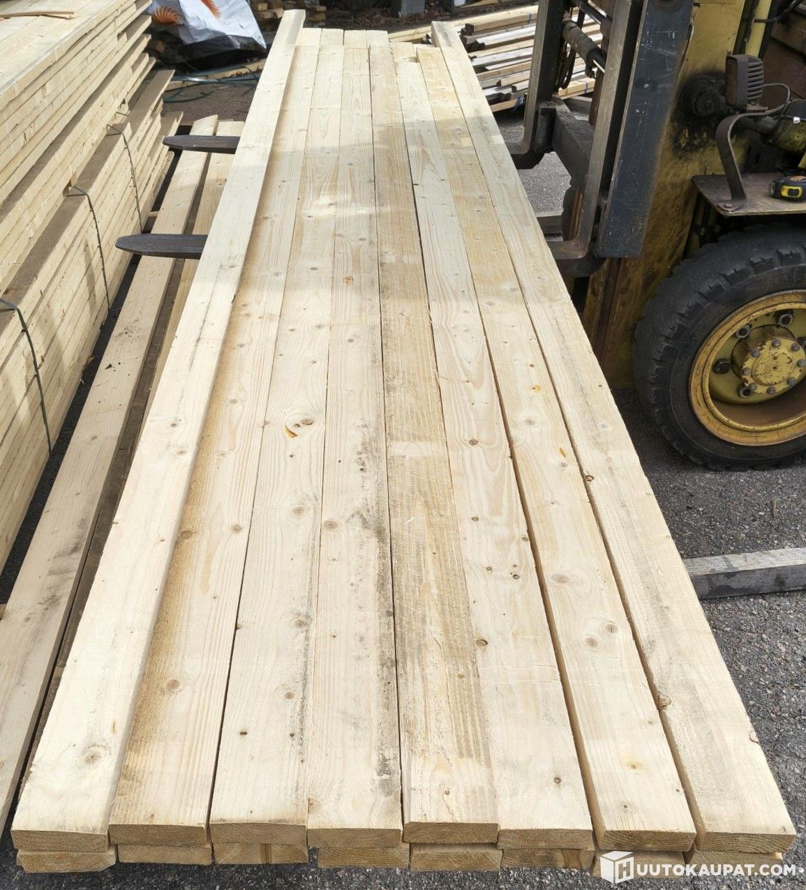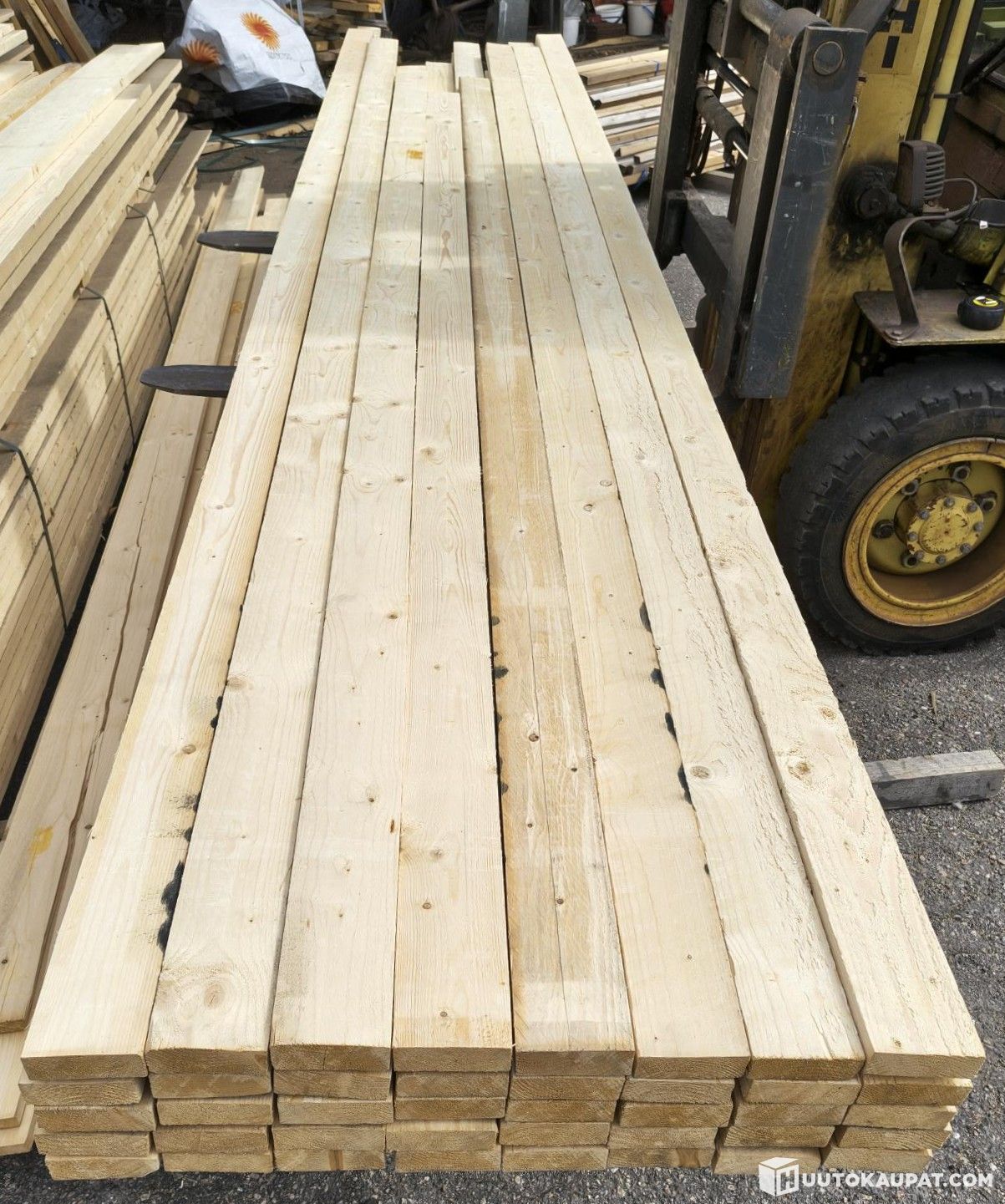 Kuvin esitelty erä erittäin siistiä ja suoraa 32x100 m kuusilautaa. Laudat ovat pääosin täyssärmäisiä; muutamassa on lievää vajaasärmää. Laatu on kuvien mukainen ST. Metrejä on yhteensä 343,2 ja pituusjakauma seuraava: 4x3,3 m, 7x3,6 m, 12x3,9 m, 15x4,5 m, 24x4,5 m, 17x4,8 m ja yksi 5,4 m. Uunikuivattua tavaraa.