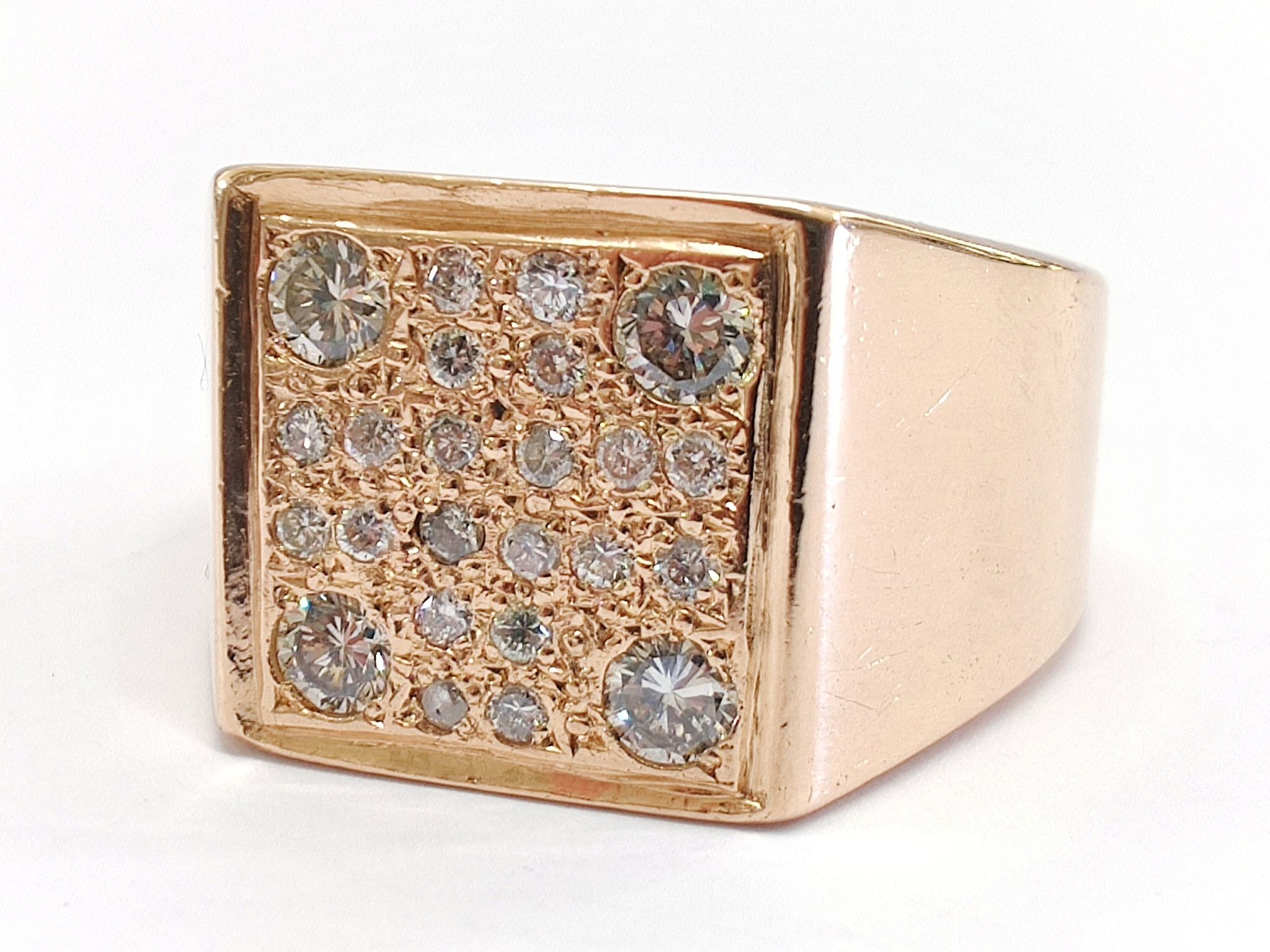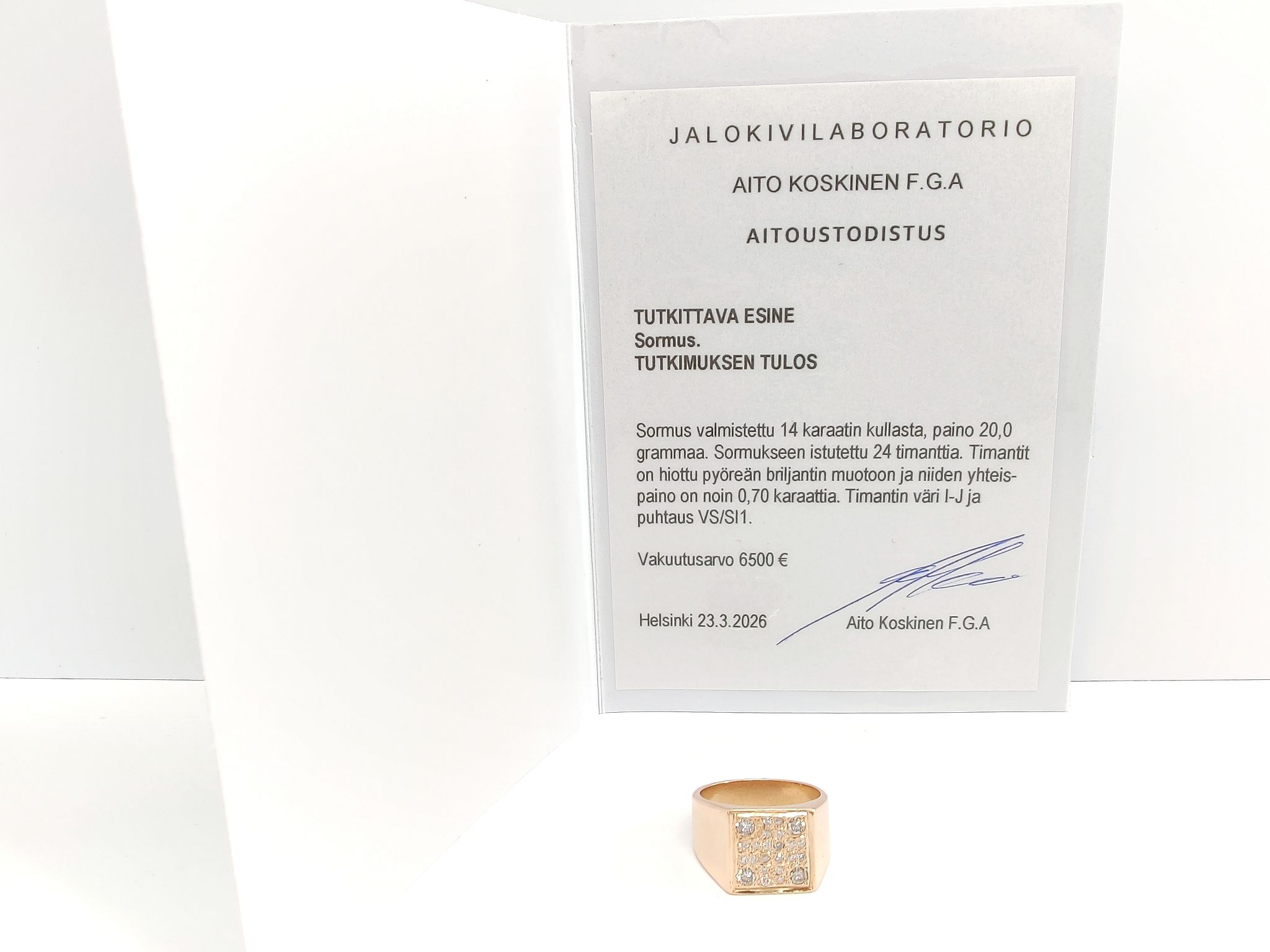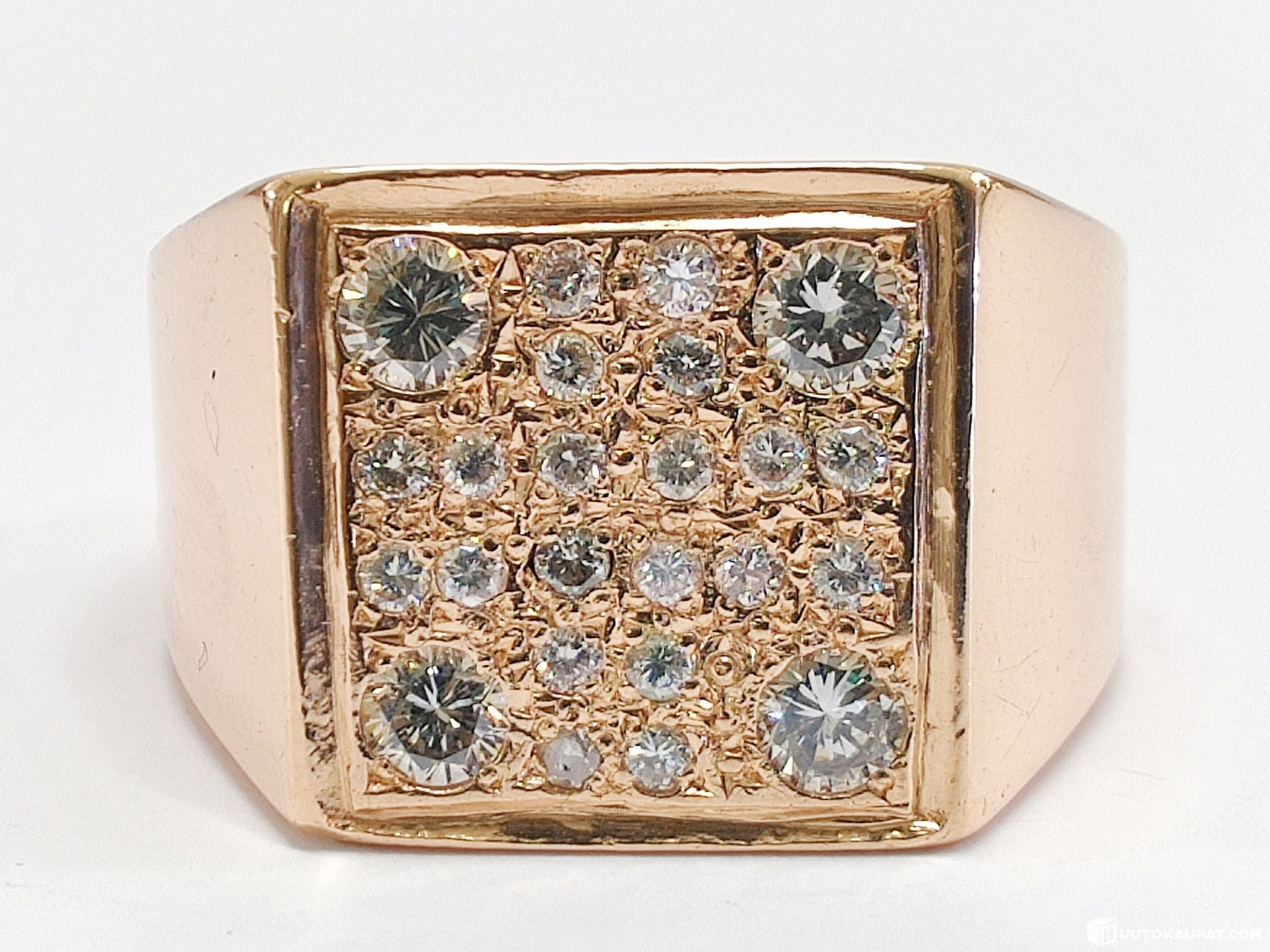 Jykevä miesten kotimaisena käsityönä valmistettu timanttikantasormus 585 14k kultaa.