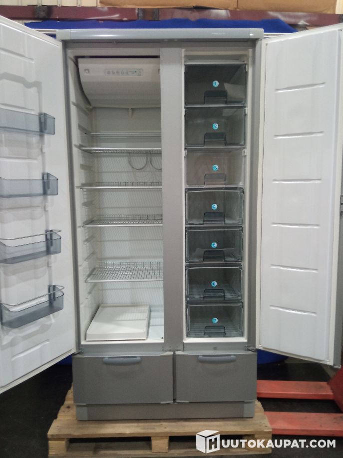 Metrin levyinen kylmiöpakastin, johon mahtuu isommankin talouden ruoat ja pakasteet.
