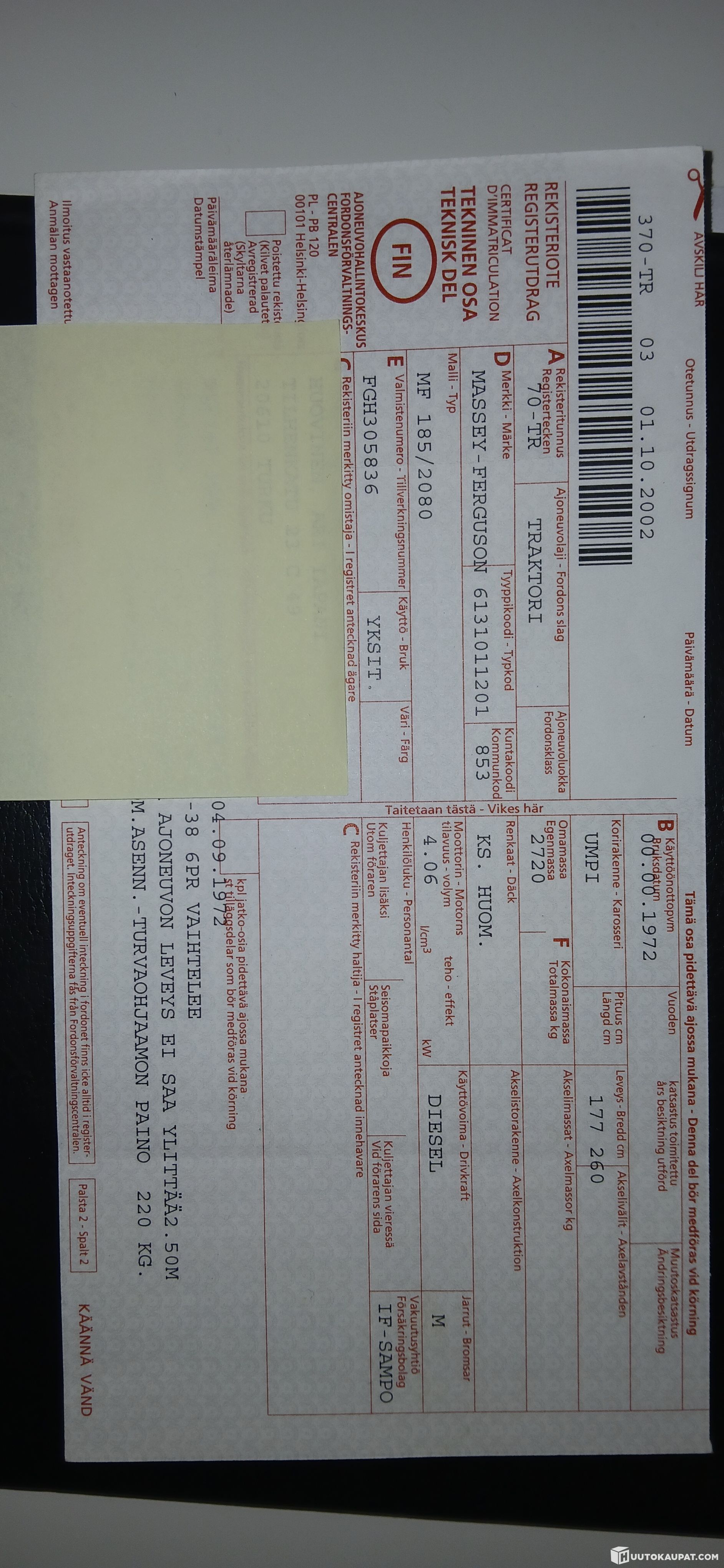 Ylöjärven Autovaraosa Oy ilmoittaa, Huutokaupat.com myy
