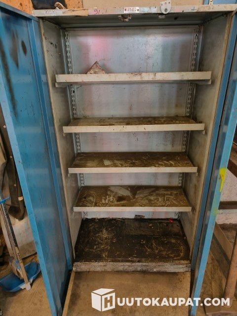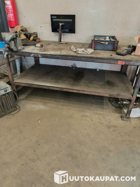 Myydään korjaamon poismuuton vuoksi työpöytä, jossa ruuvipuristin. työpöytä leveys 250, syvyys 100 ja korkeus 95 cm. Reikälevy 190 x 100. Työkalukaappi GWS 80 x 150 x 43 cm. Irtotavarat eivät kuulu kauppaan.