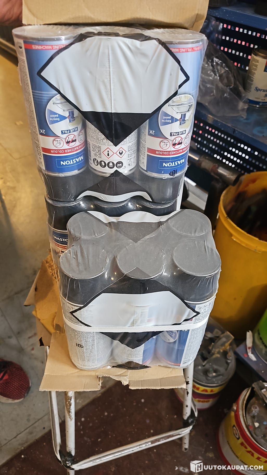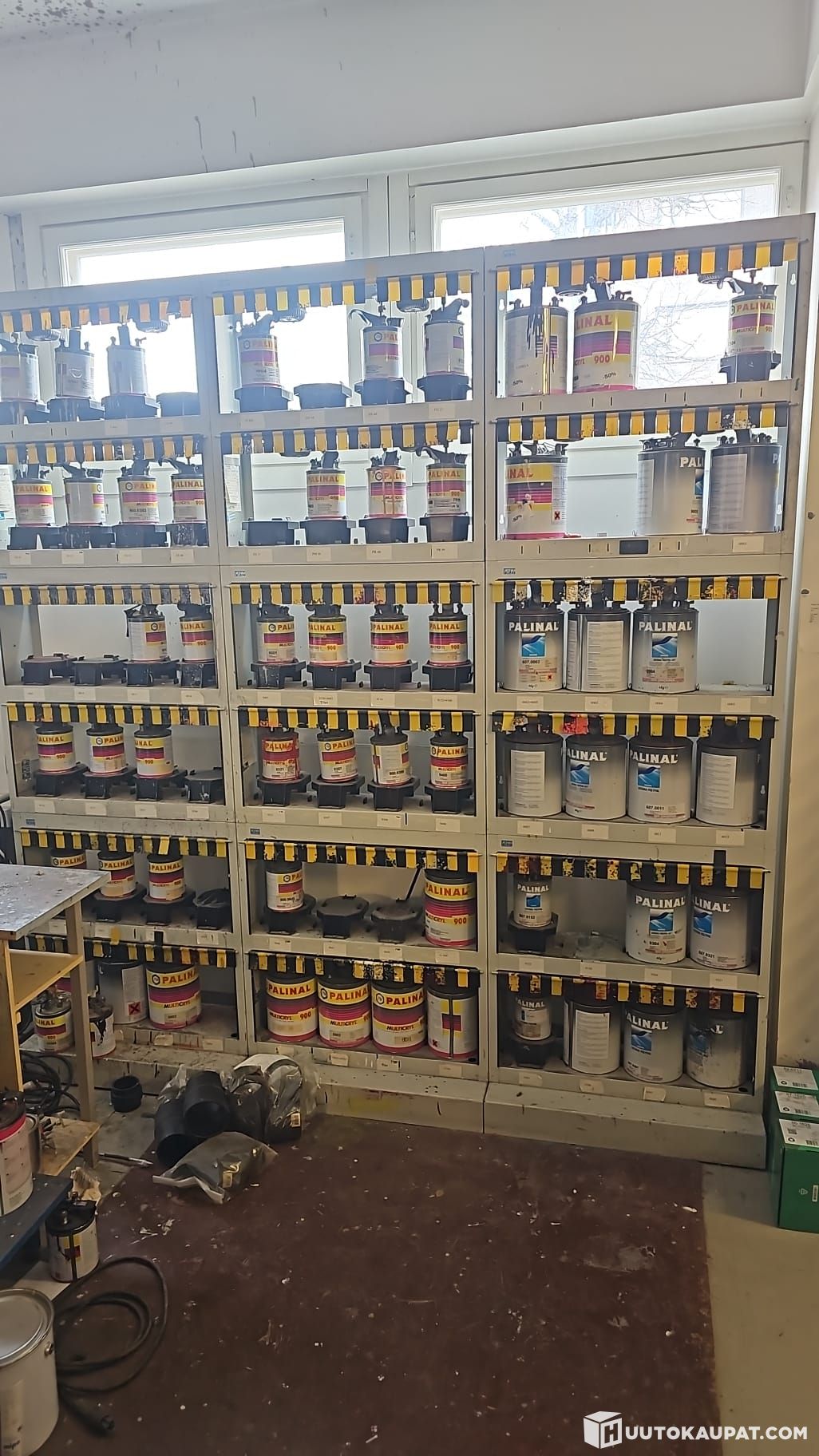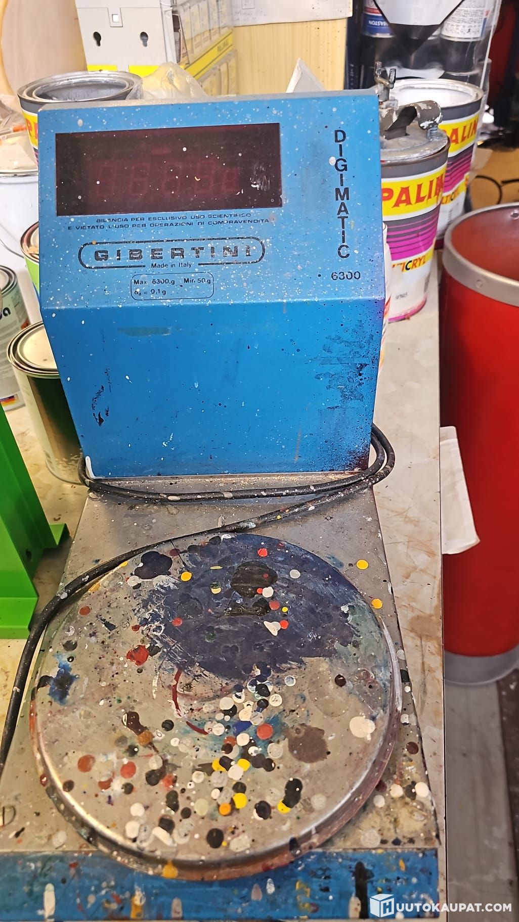 Maalinsekoituskone automaaleille, maalit mukaan. Spraypullon täyttöpumppu, vaaka ja kaavanlukukone (mikrofilminlukukone?).