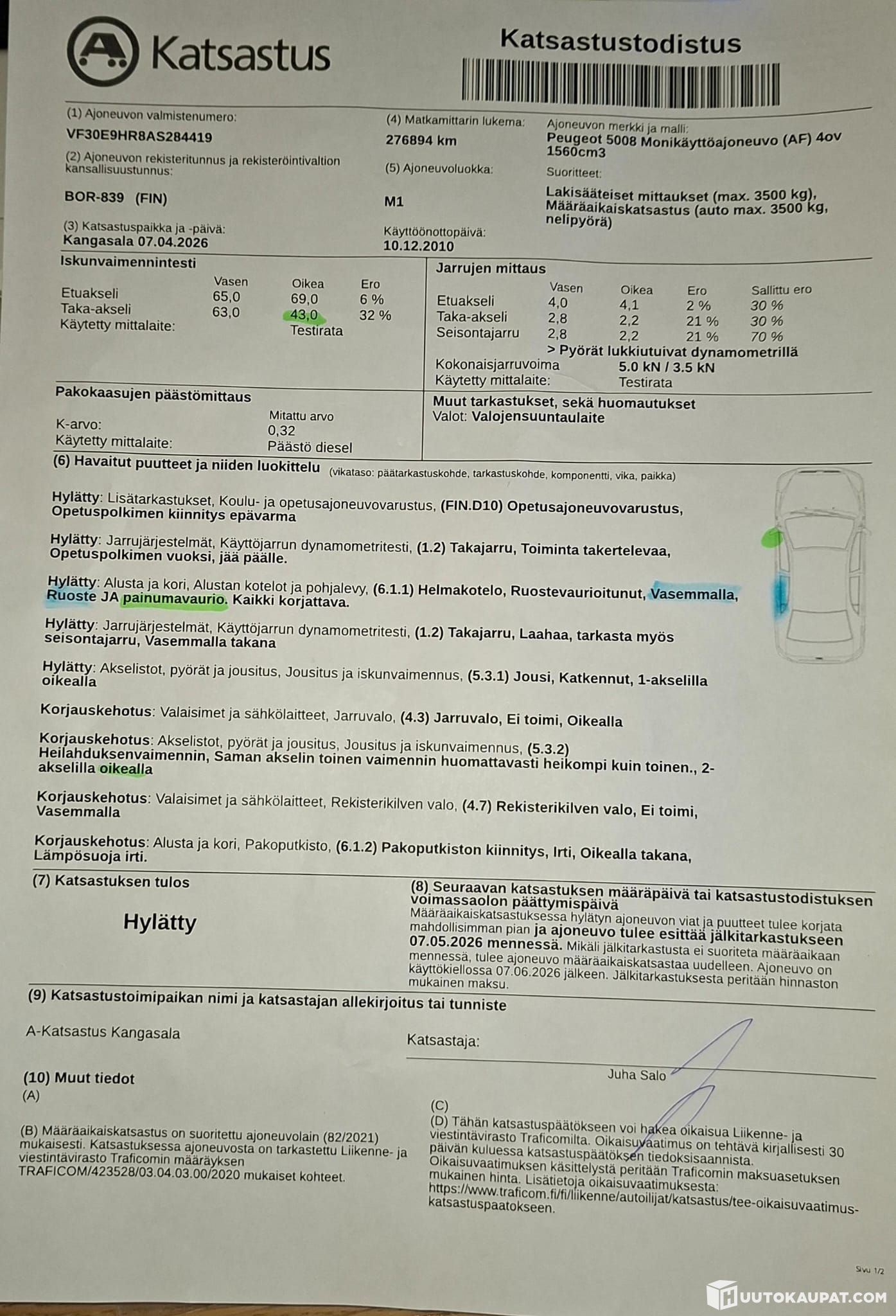 Autolla on ajettu lyhyt koeajo, jonka aikana huomasimme: